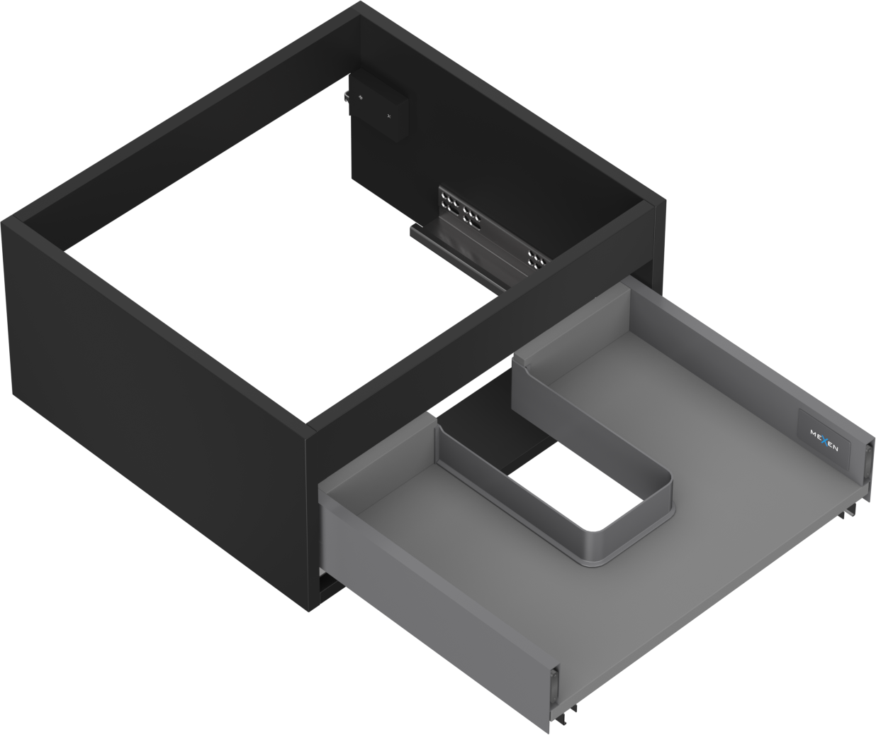 La découpe dans le tiroir est conçue de manière à accueillir le siphon, qui est nécessaire dans les installations de lavabo. Ainsi, le meuble peut être installé de manière pleinement fonctionnelle, sans devoir renoncer à l'espace du tiroir au profit de l'installation.