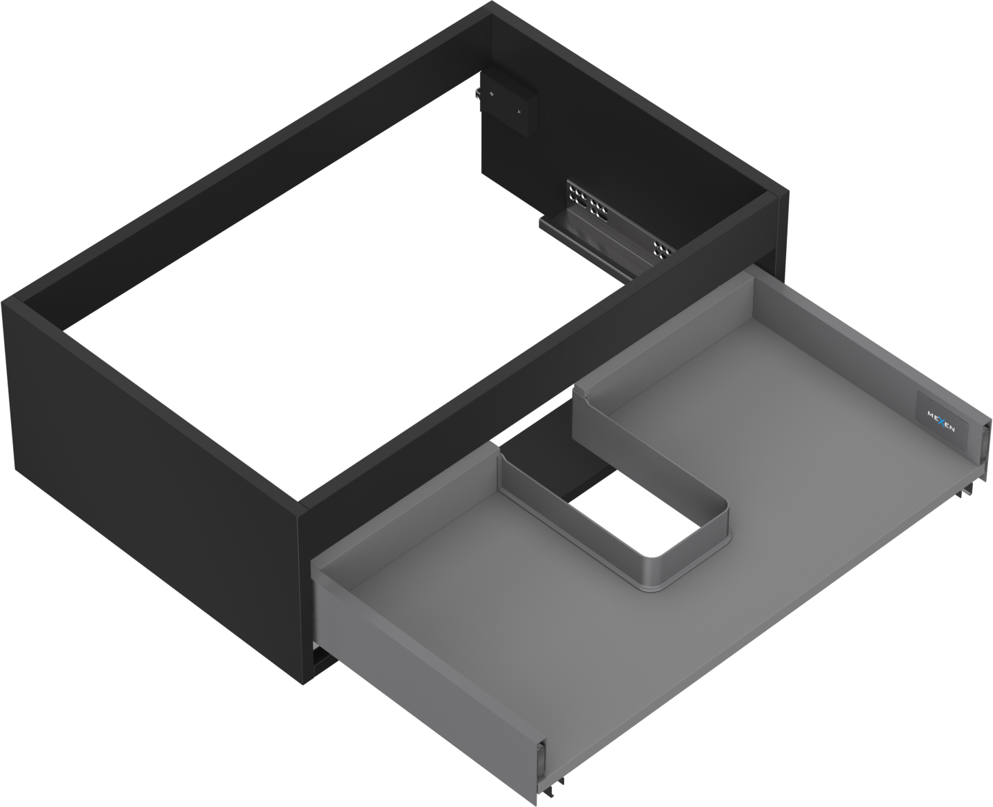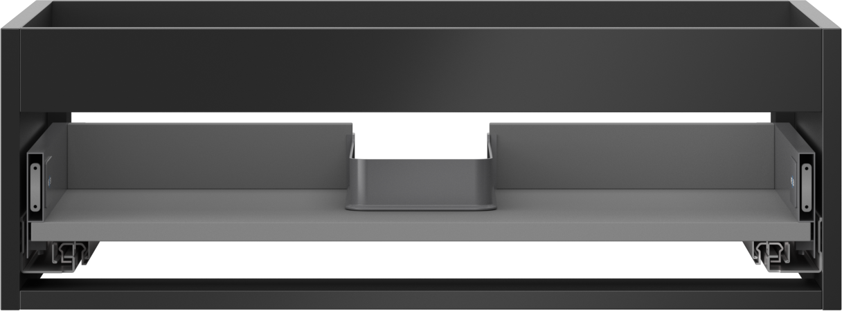 La découpe dans le tiroir est conçue de manière à accueillir le siphon, qui est nécessaire dans les installations de lavabo. Ainsi, le meuble peut être installé de manière pleinement fonctionnelle, sans devoir renoncer à l'espace du tiroir au profit de l'installation.