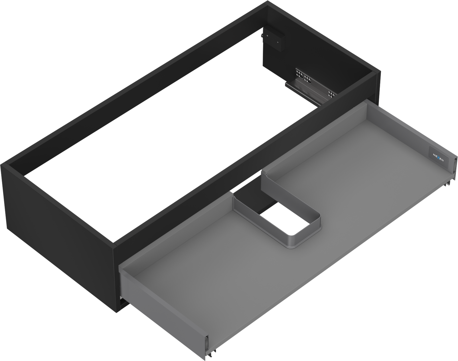 La découpe dans le tiroir est conçue de manière à accueillir le siphon, qui est nécessaire dans les installations de lavabo. Ainsi, le meuble peut être installé de manière pleinement fonctionnelle, sans devoir renoncer à l'espace du tiroir au profit de l'installation.