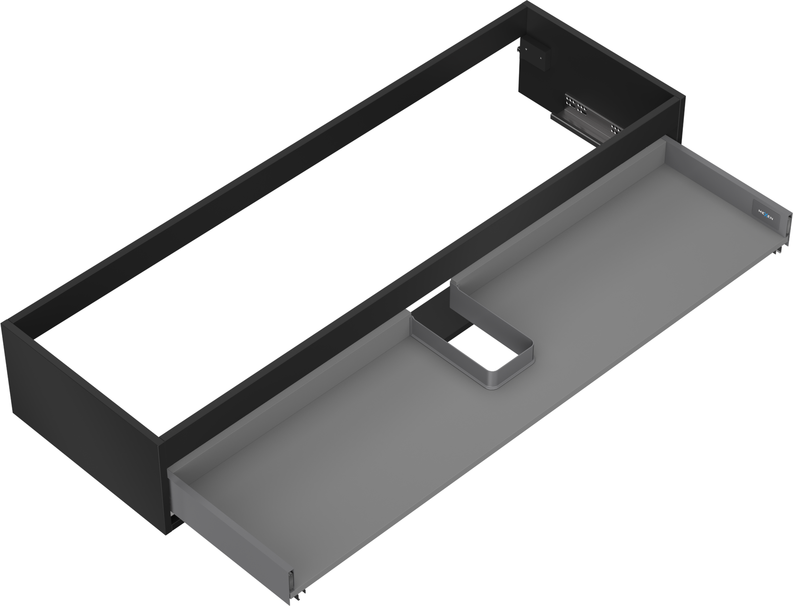 La découpe dans le tiroir est conçue de manière à accueillir le siphon, qui est nécessaire dans les installations de lavabo. Ainsi, le meuble peut être installé de manière pleinement fonctionnelle, sans devoir renoncer à l'espace du tiroir au profit de l'installation.