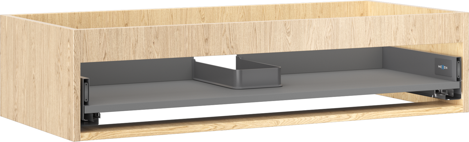 Un tiroir à sortie complète est un type de tiroir équipé d'un mécanisme permettant son extraction totale du corps du meuble. Ce mécanisme facilite l'accès au contenu du tiroir, car il n'est pas nécessaire d'atteindre les bords arrière.