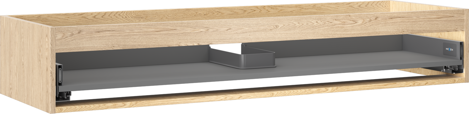 Un tiroir à sortie complète est un type de tiroir équipé d'un mécanisme permettant son extraction totale du corps du meuble. Ce mécanisme facilite l'accès au contenu du tiroir, car il n'est pas nécessaire d'atteindre les bords arrière.