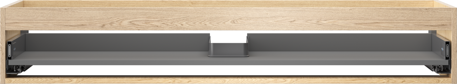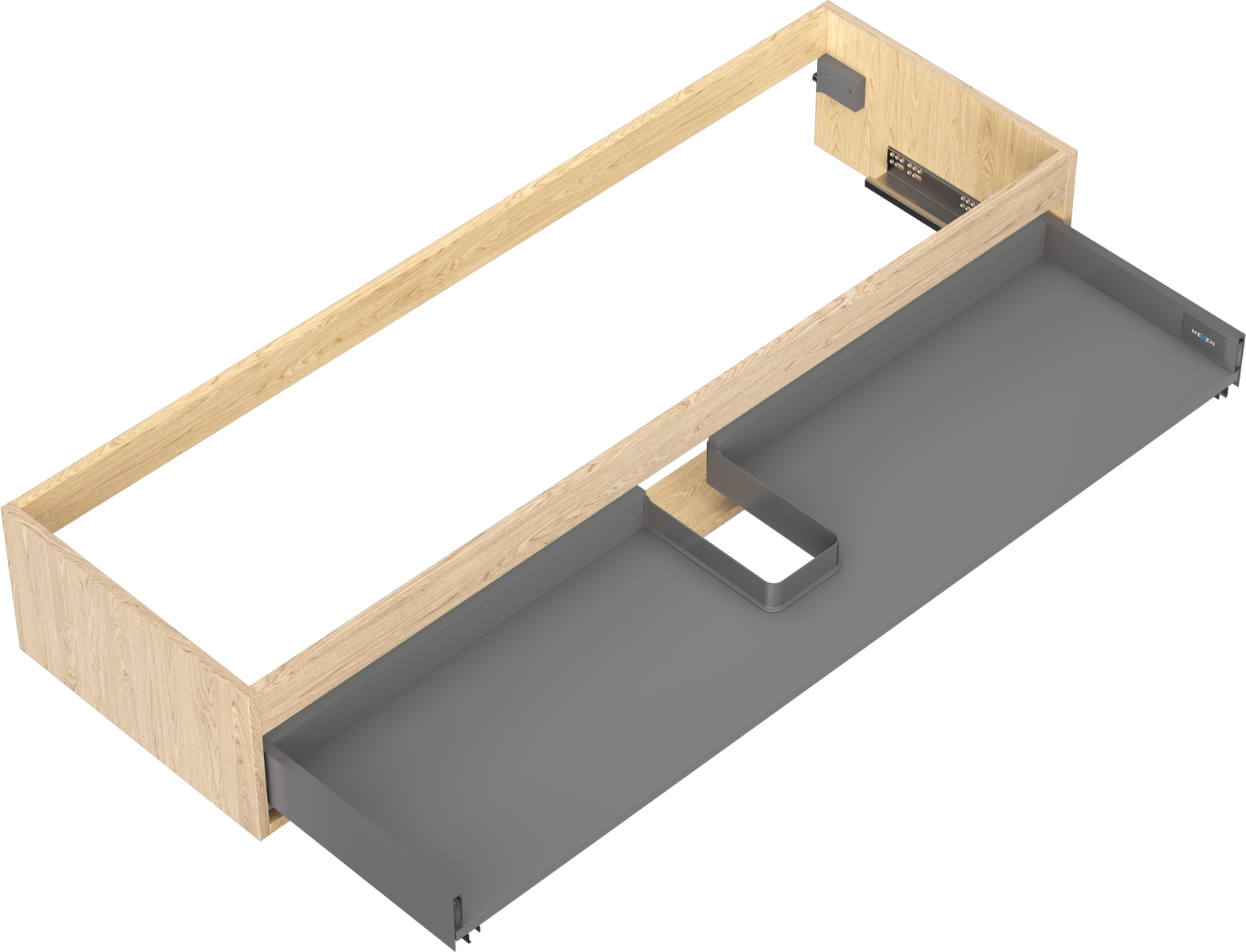 La découpe dans le tiroir est conçue de manière à accueillir le siphon, qui est nécessaire dans les installations de lavabo. Ainsi, le meuble peut être installé de manière pleinement fonctionnelle, sans devoir renoncer à l'espace du tiroir au profit de l'installation.