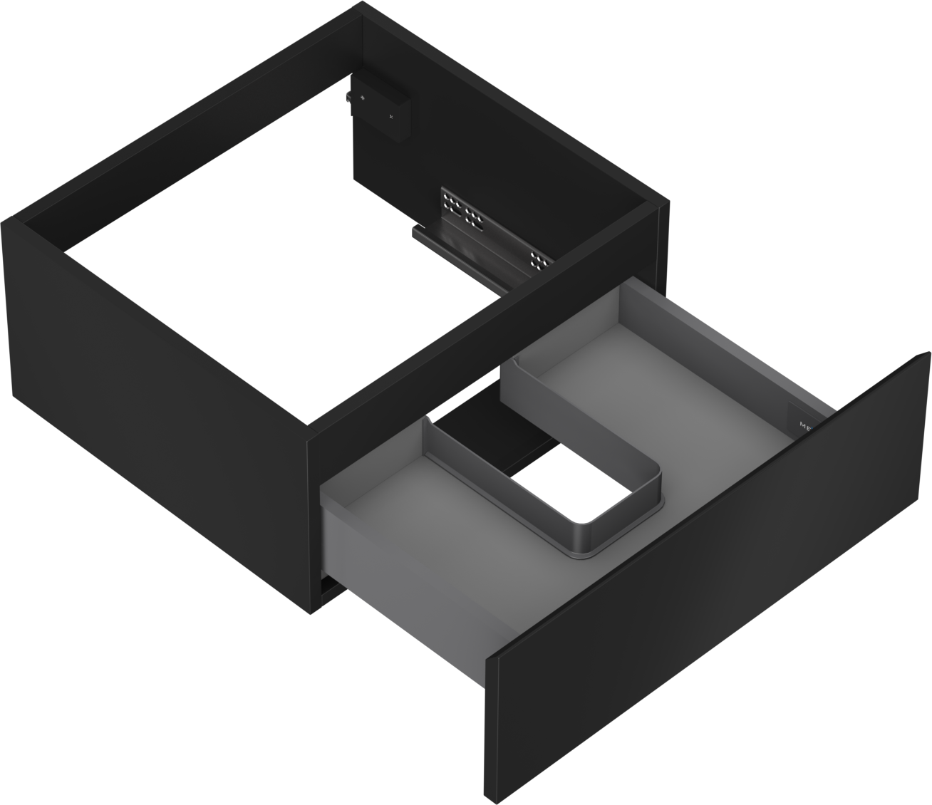 La découpe dans le tiroir est conçue de manière à accueillir le siphon, qui est nécessaire dans les installations de lavabo. Ainsi, le meuble peut être installé de manière pleinement fonctionnelle, sans devoir renoncer à l'espace du tiroir au profit de l'installation.