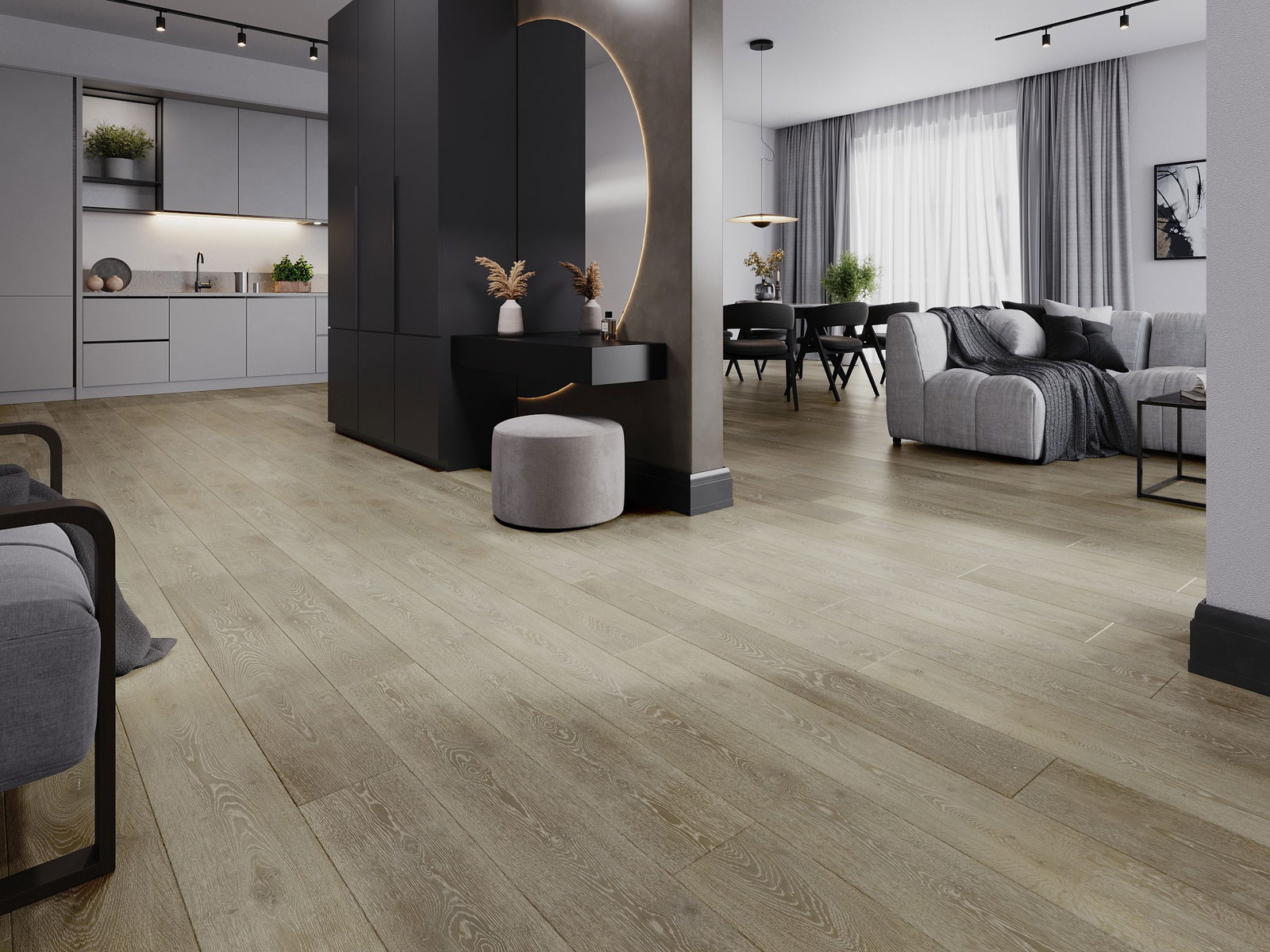 Les panneaux possèdent un joint à 4 côtés - chaque bord a été fraisée de manière à créer une jonction en forme de V après la pose. Ce design donne au sol une structure plus prononcée, ajoutant profondeur et caractère esthétique. Cet effet est particulièrement apprécié dans les aménagements modernes, où les détails soulignent l'aspect unique de l'intérieur.