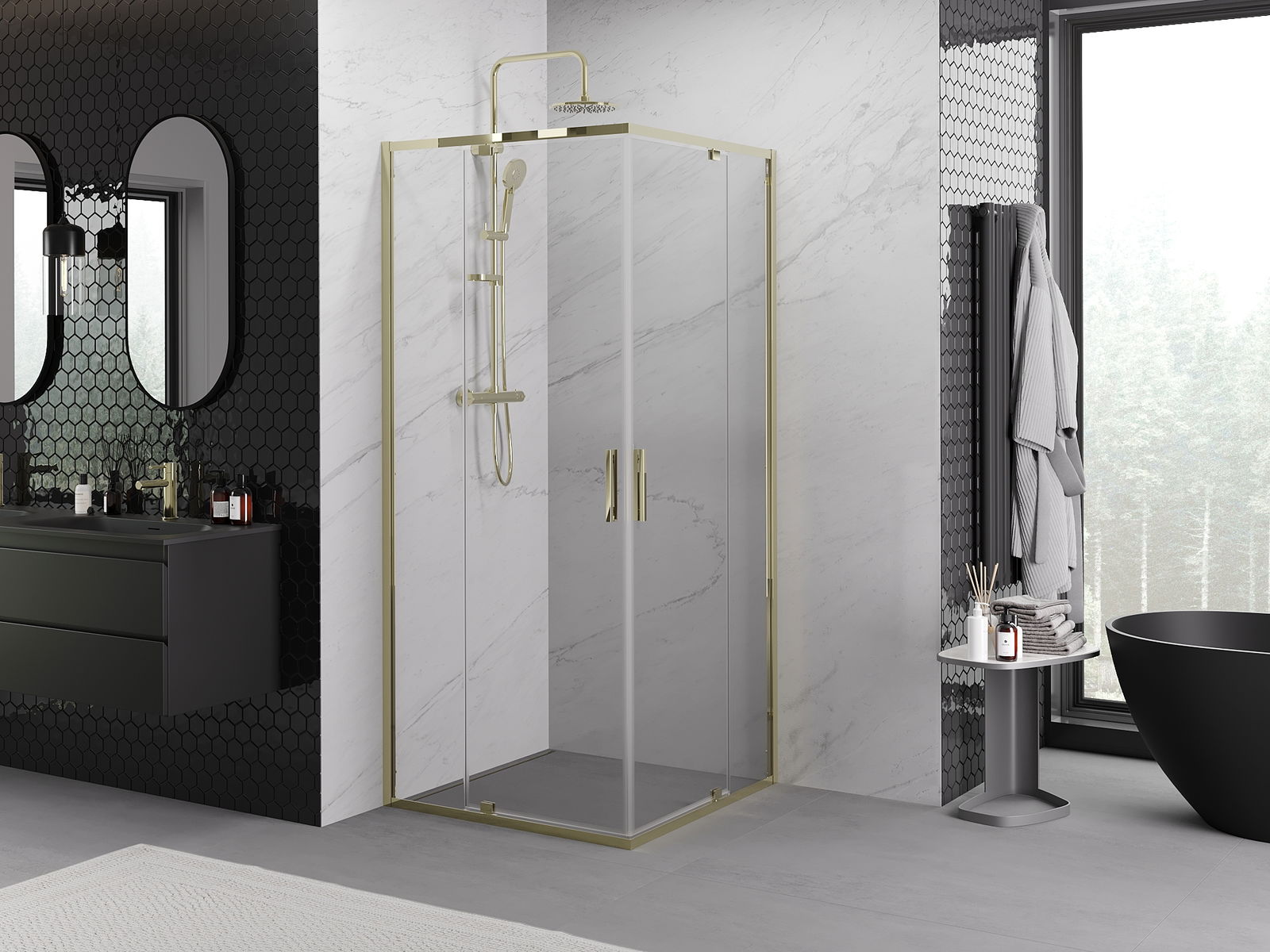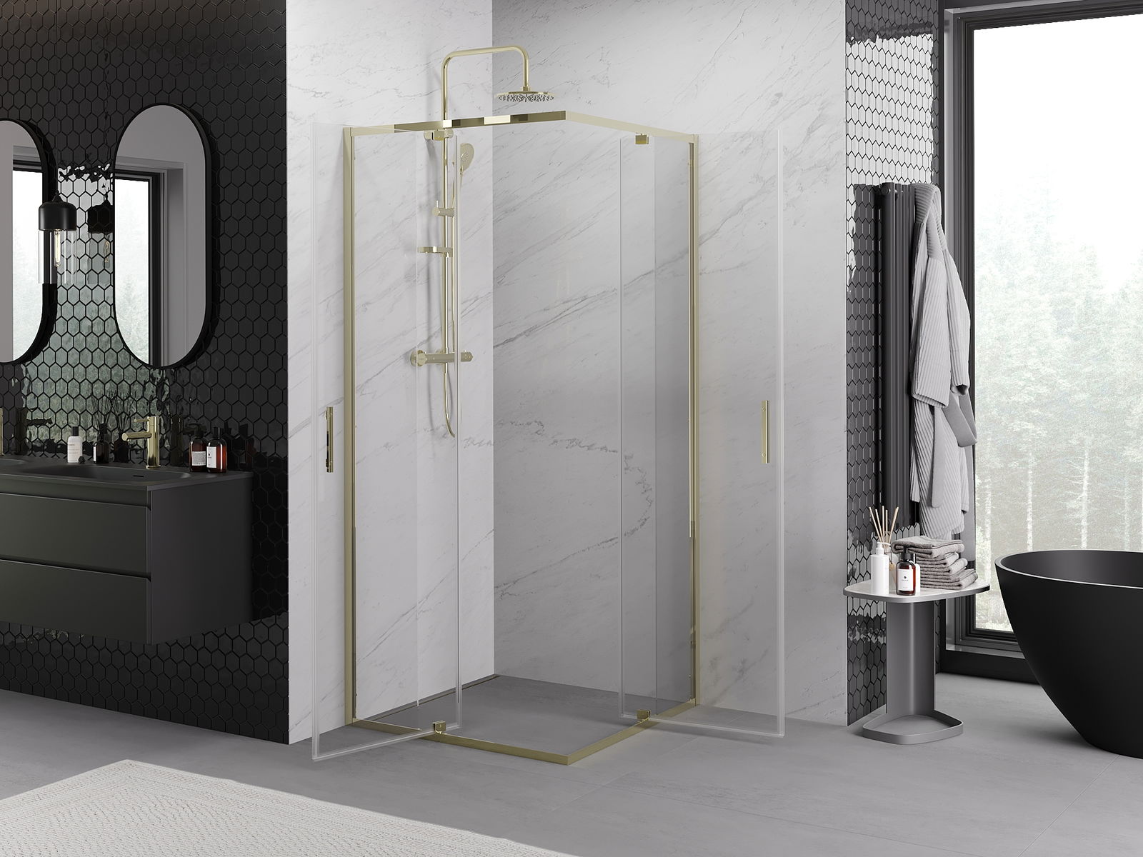 Mexen Exo cabine de douche carrée pivotante 70 x 70 cm, transparente, dorée - 8110-070-070-50-00