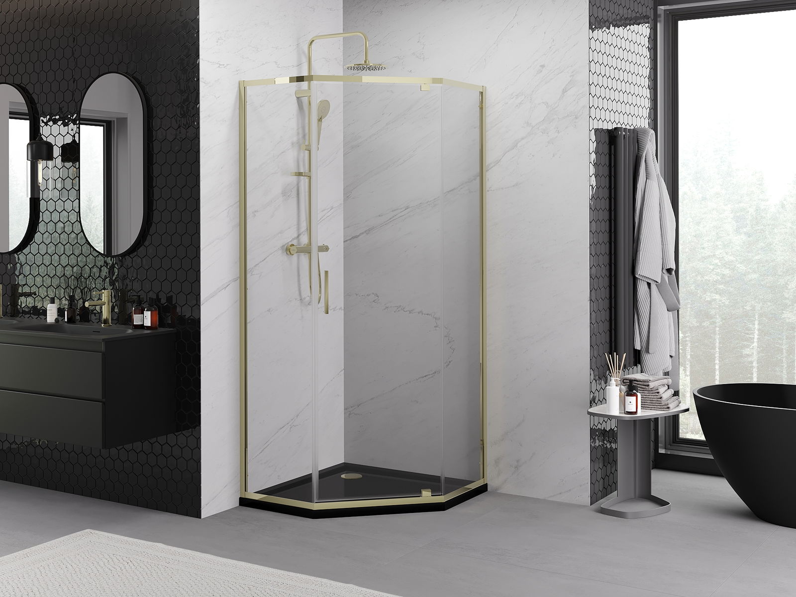 Mexen Exo cabine de douche pentagonale pivotante 90 x 90 cm, transparente, dorée - 812-090-090-50-00
