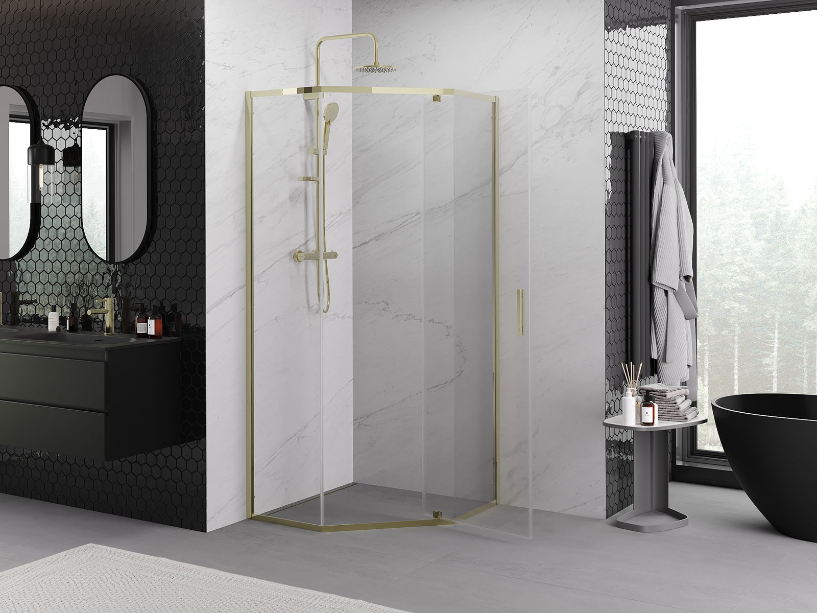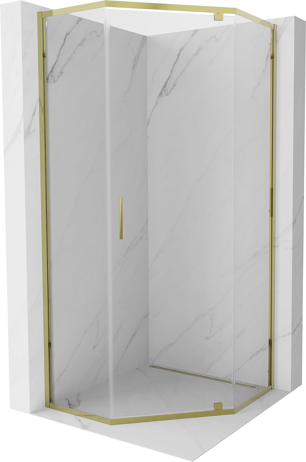Mexen Exo cabine de douche pentagonale pivotante 100 x 100 cm, transparent, or - 812-100-100-50-00