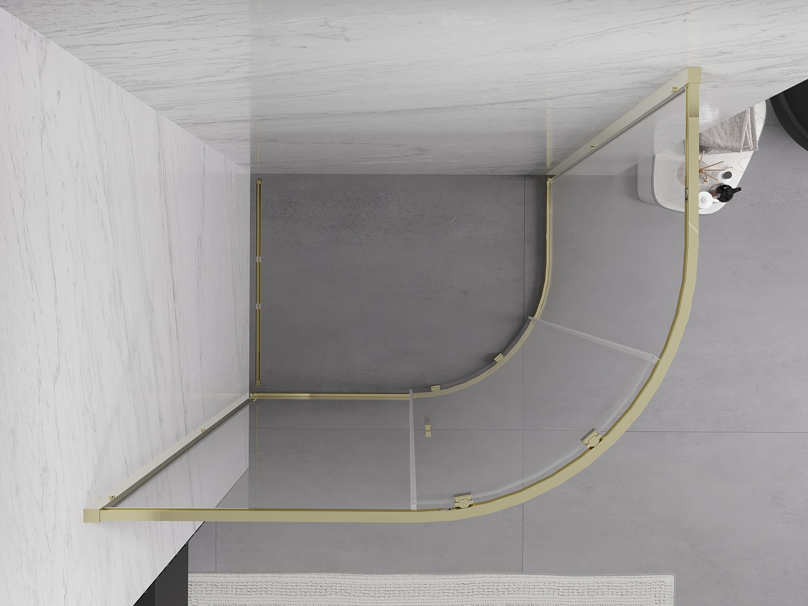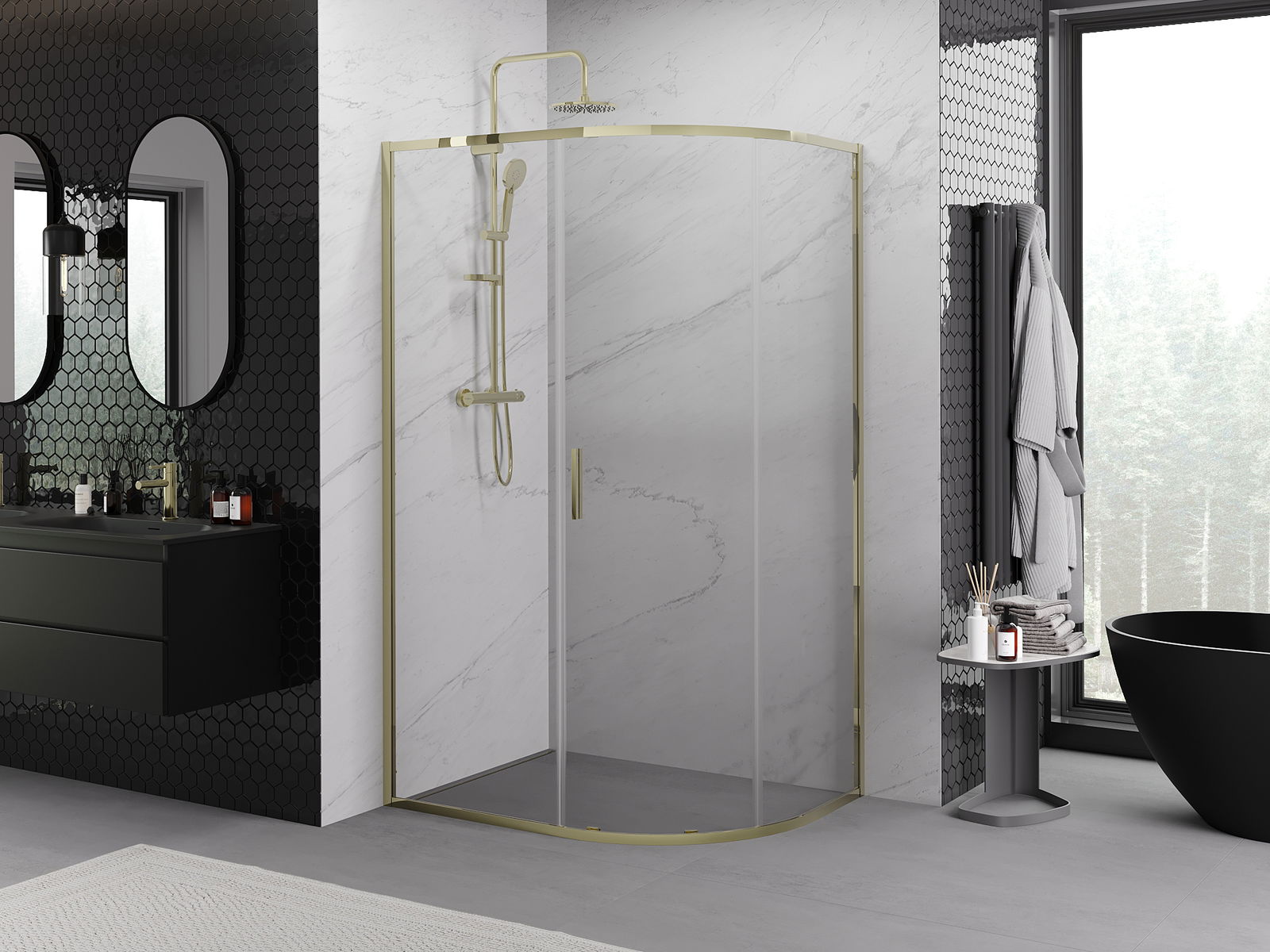 Mexen Exo cabine de douche demi-circulaire coulissante 90 x 80 cm, transparente, dorée - 8131-090-080-50-00