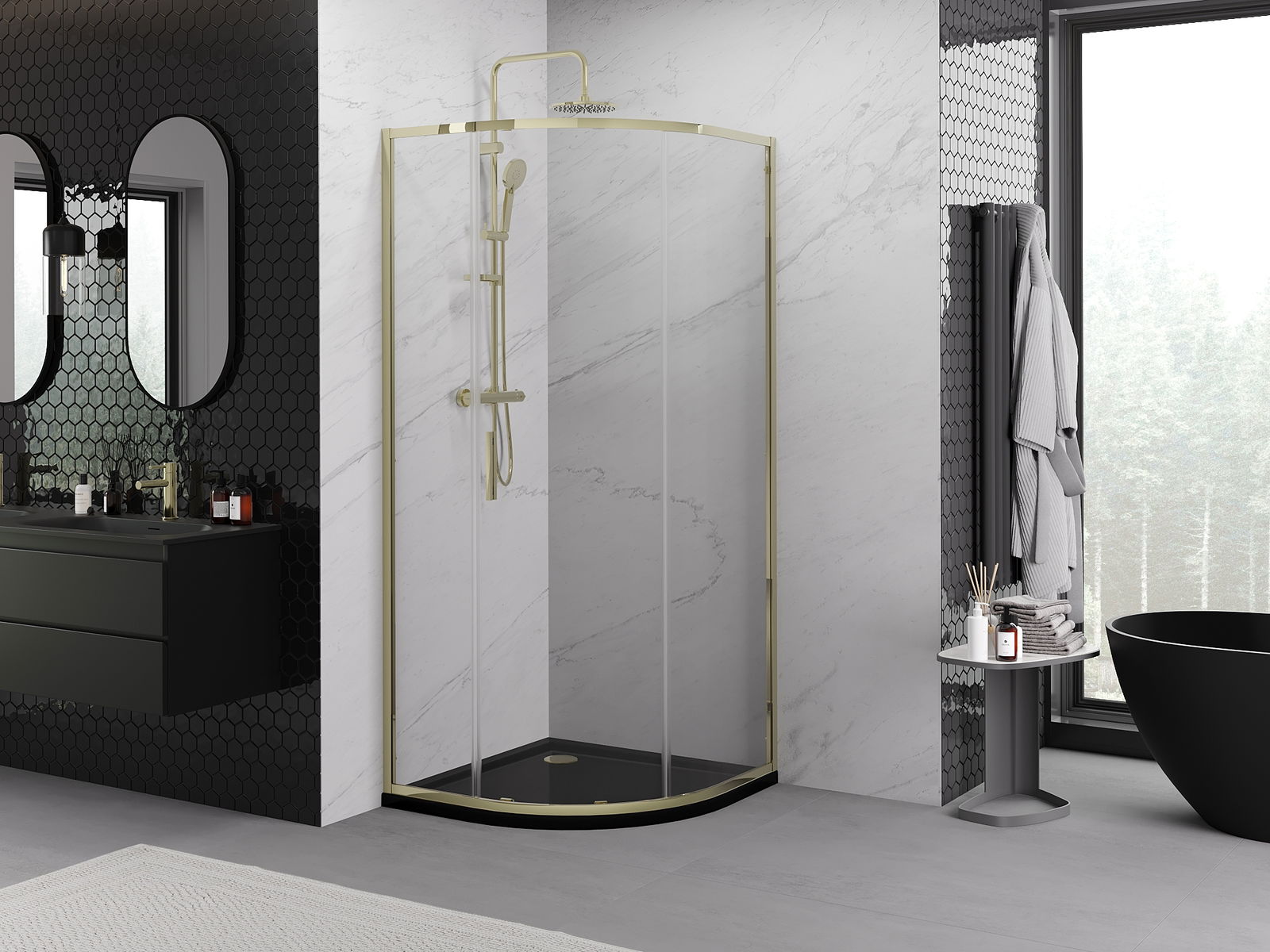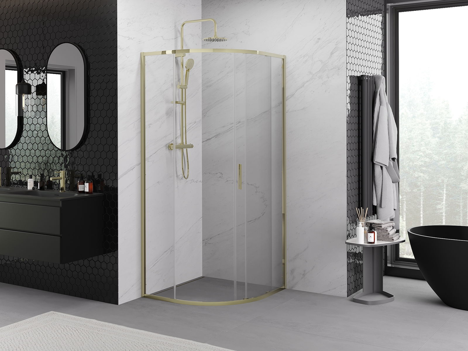 Mexen Exo cabine de douche semi-circulaire coulissante 90 x 90 cm, transparent, or - 8131-090-090-50-00