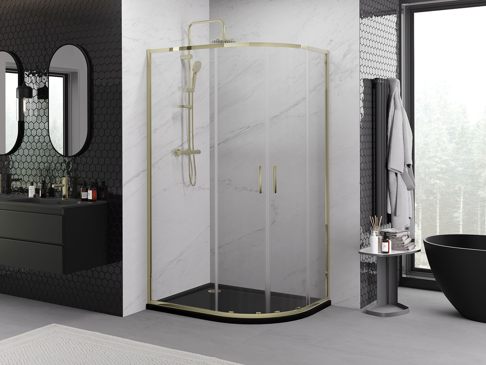 Mexen Exo cabine de douche arrondie coulissante 100 x 90 cm, transparent, or - 8132-100-090-50-00