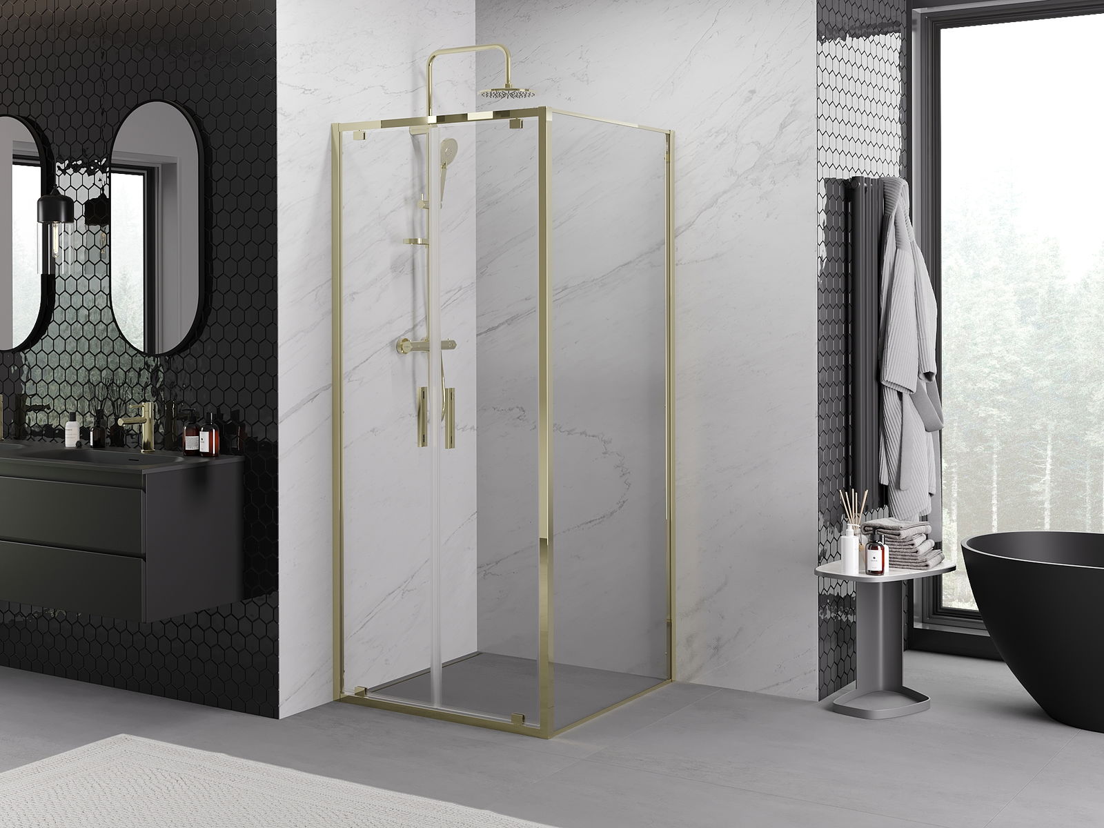 Mexen Exo cabine de douche pivotante 80 x 80 cm, transparent, doré - 8182-080-080-50-00