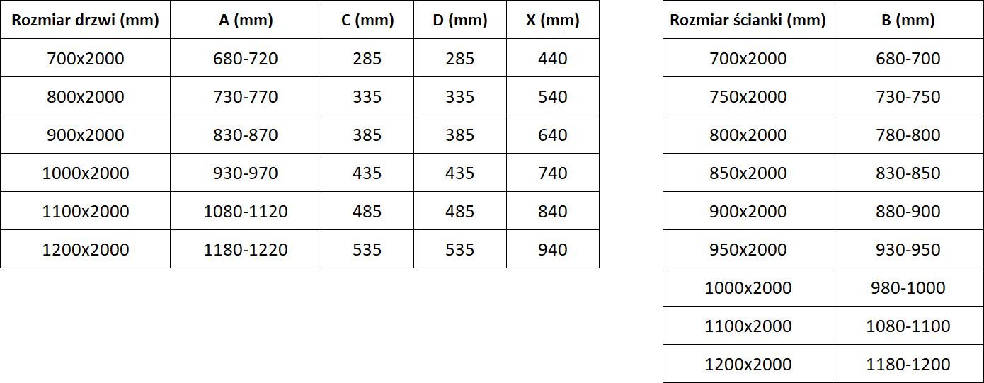 Taille: 90x95 cm (porte 90 cm, paroi 95 cm)