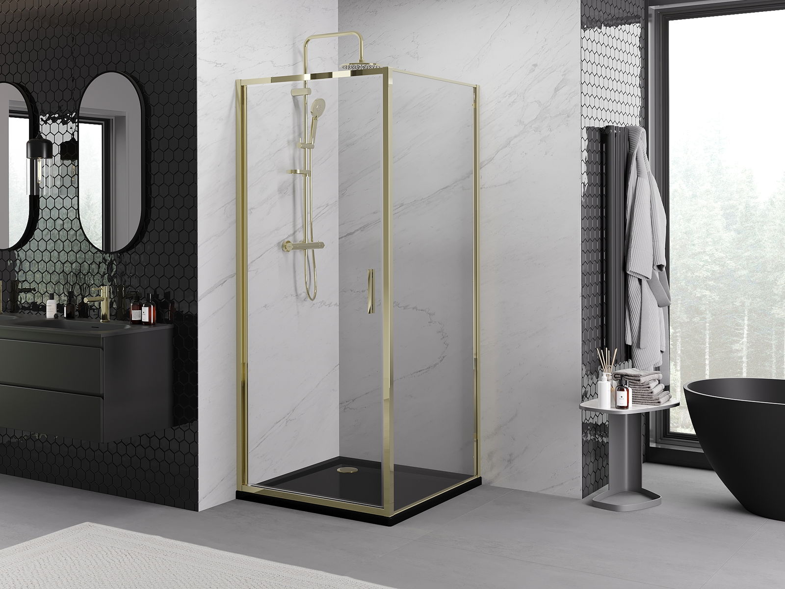 Mexen Exo cabine de douche pivotante 80 x 80 cm, transparent, dorée - 817-080-080-50-00