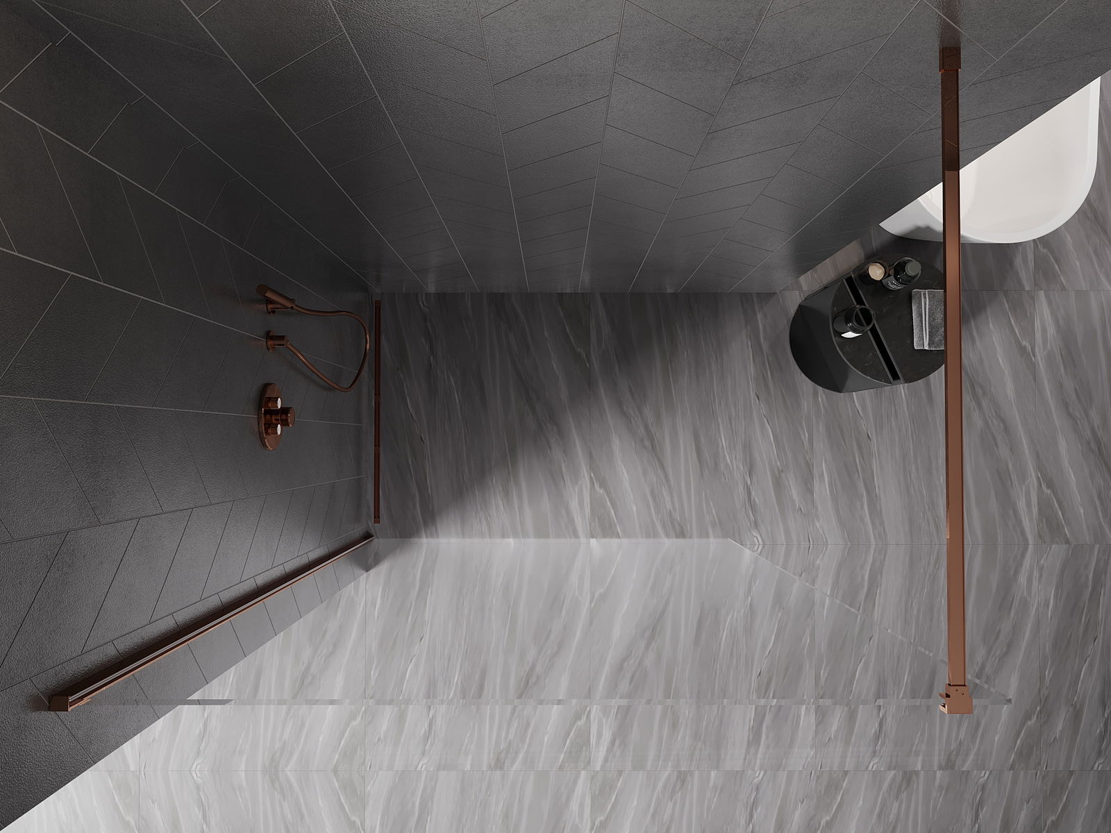 Mexen Kioto-X paroi de douche Walk-in 50 x 200 cm, transparent 10 mm, or rose - 800-050-101-60-00-X