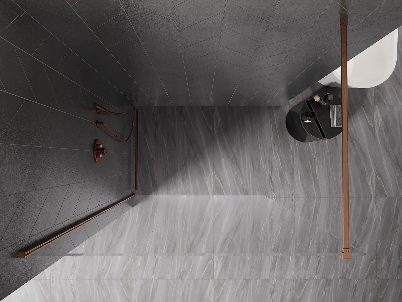 Mexen Kioto-X paroi de douche Walk-in 140 x 200 cm, transparent 10 mm, cuivre brossé - 800-140-101-65-00-X