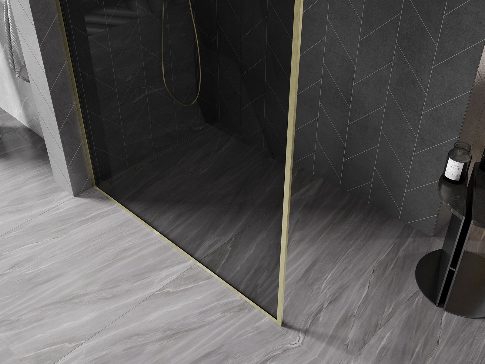 Mexen Kioto-XF paroi de douche Walk-in avec cadre 80 x 202 cm, graphite 10 mm, or brossé - 800-080-104-55-40-X