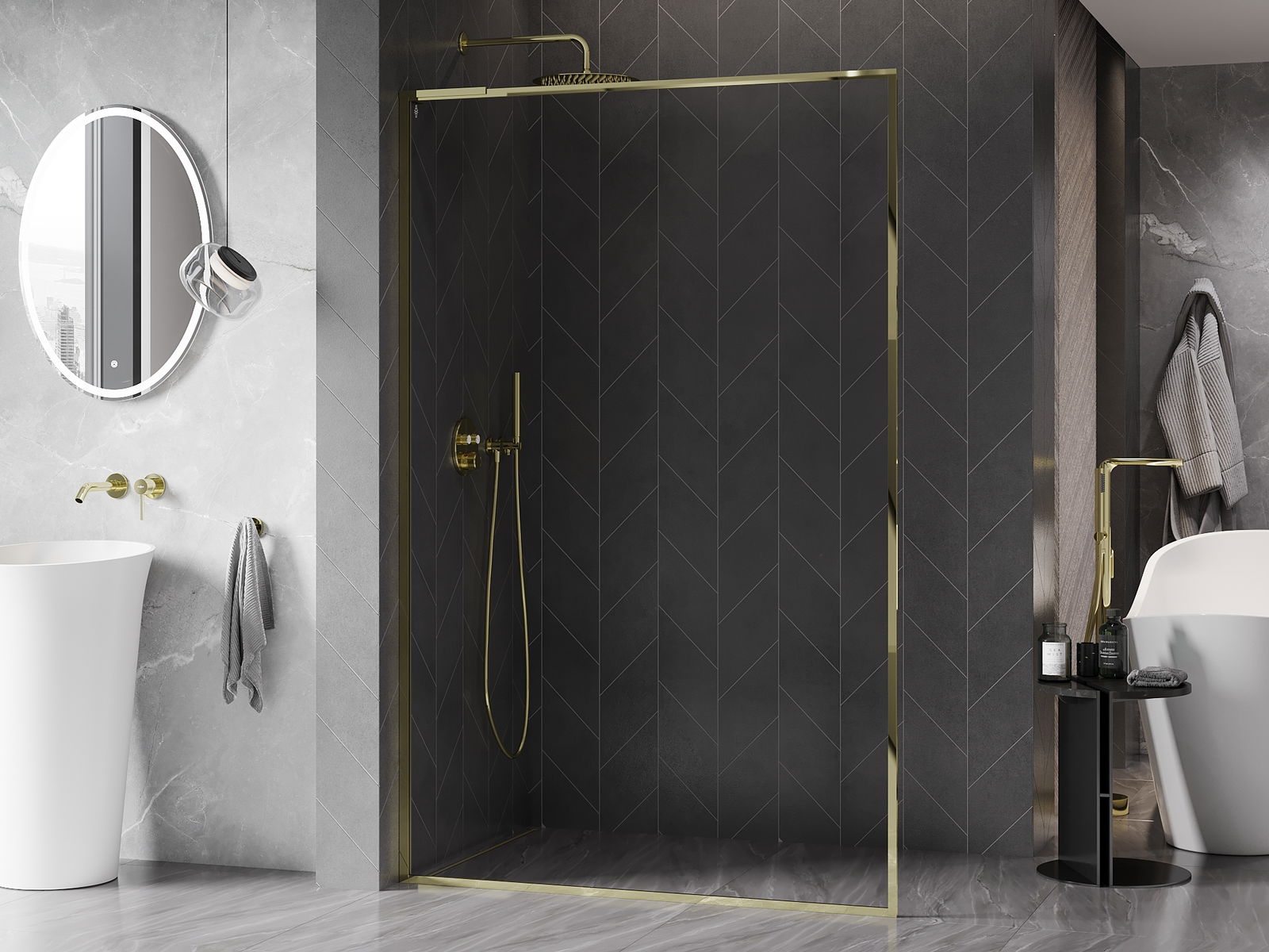 Mexen Kioto-F L panneau de douche Walk-in avec cadre 50 x 202 cm, transparent 8 mm, doré - 800-050-174-50-00