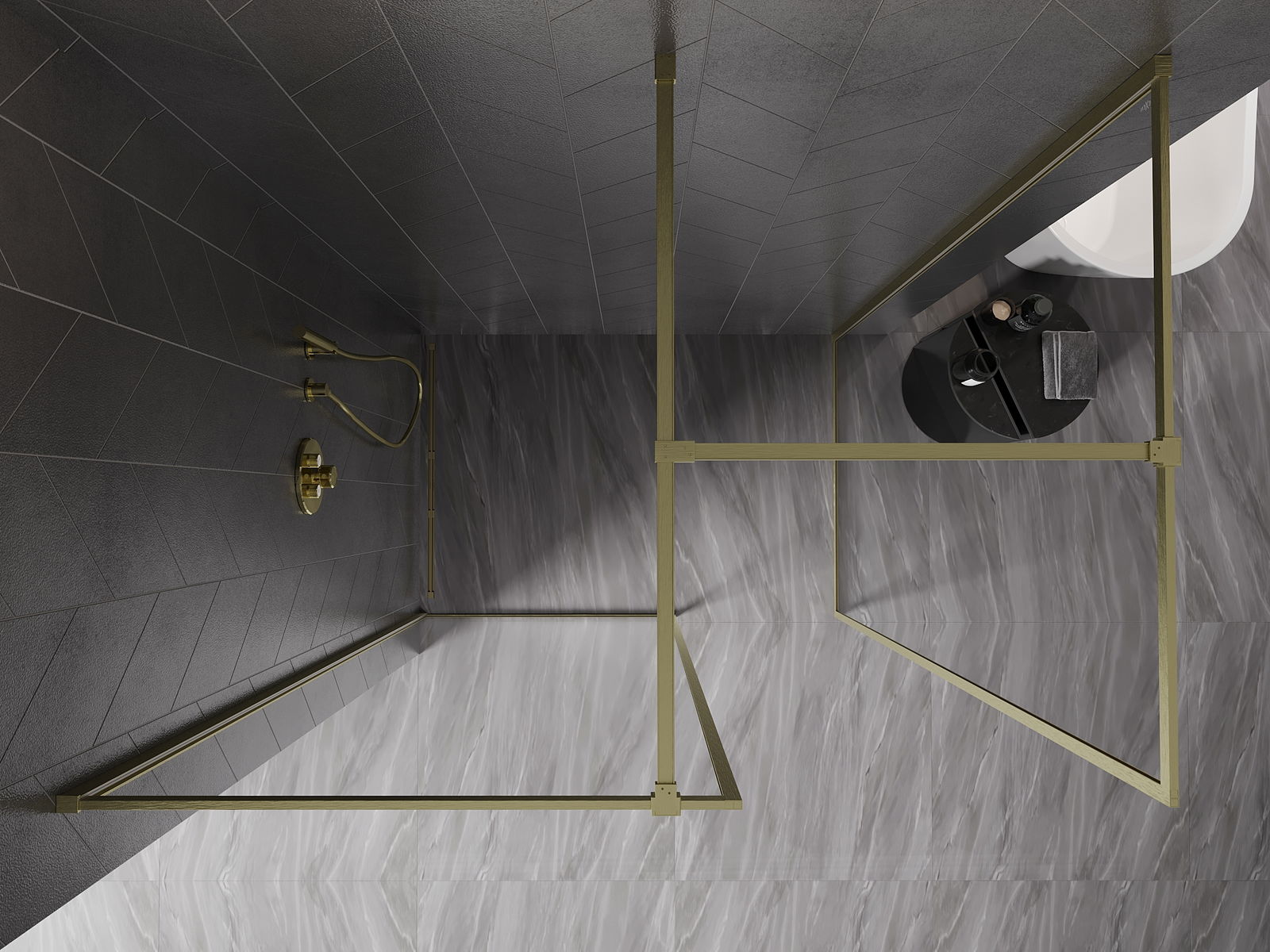 Mexen Kioto-XF Panneau de douche Walk-in avec cadre 160 x 90 cm, transparent 10 mm, or brossé - 800-160-202-04-55-090-XF