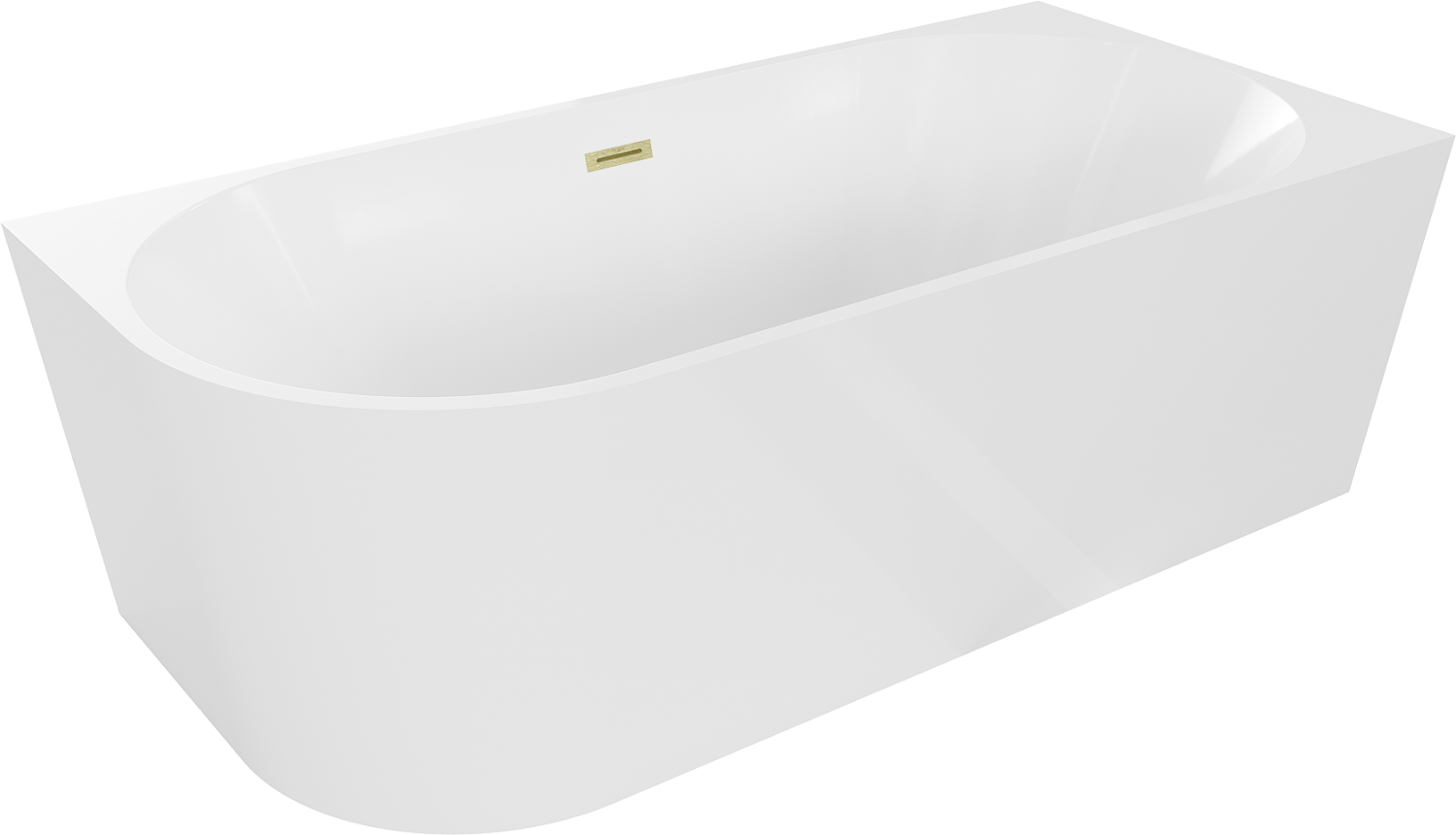 Mexen Mia baignoire autoportante d'angle droit 140 x 75 cm, blanche, trop-plein doré brossé - 52691407500P-55