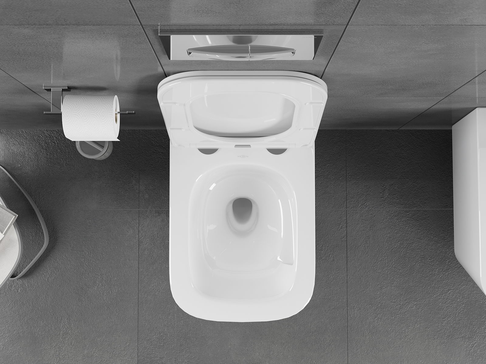 Système caractérisé par l'absence de rebord traditionnel (sans rebord) et un système de rinçage en spirale spécifique qui rappelle un tourbillon. L'eau de rinçage crée un effet "tornado", nettoyant rapidement et efficacement toute la surface de la cuvette, ce qui aide à mieux la purifier et empêche la saleté de s'y déposer.