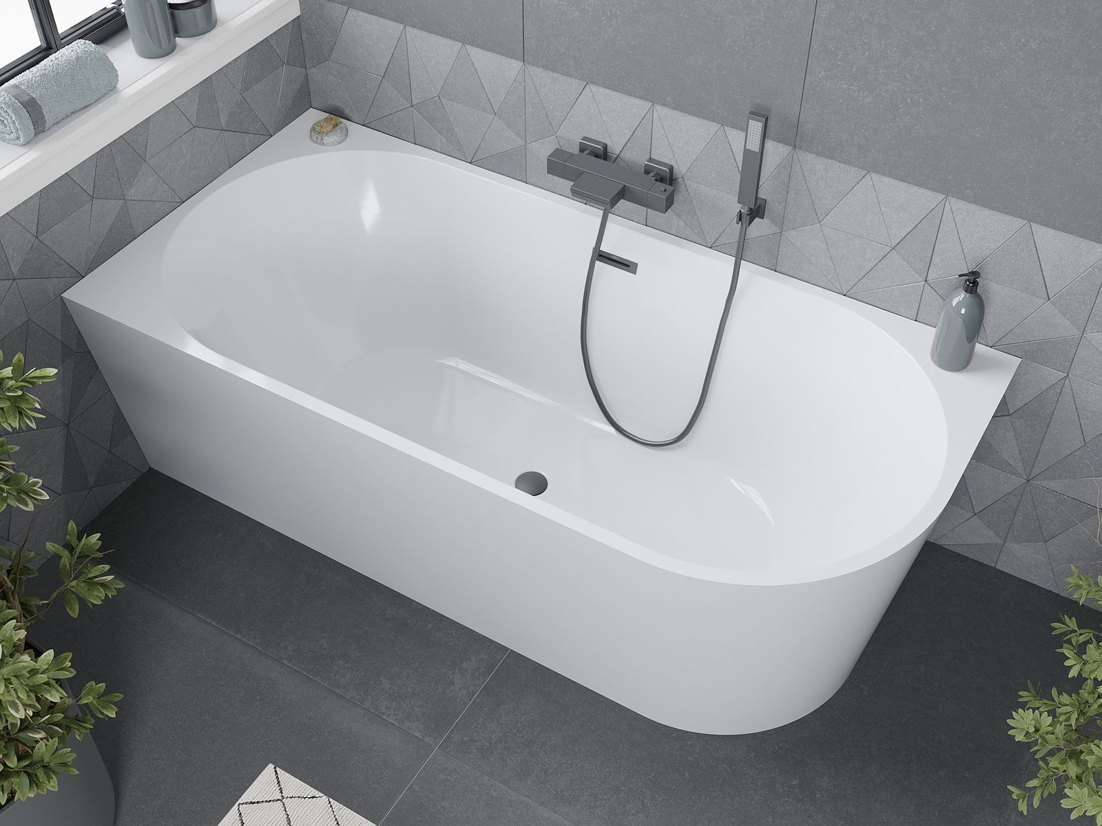 Mexen Mia baignoire autoportante d'angle gauche 160 x 80 cm, blanche, trop-plein en métal gun - 52691608000L-95