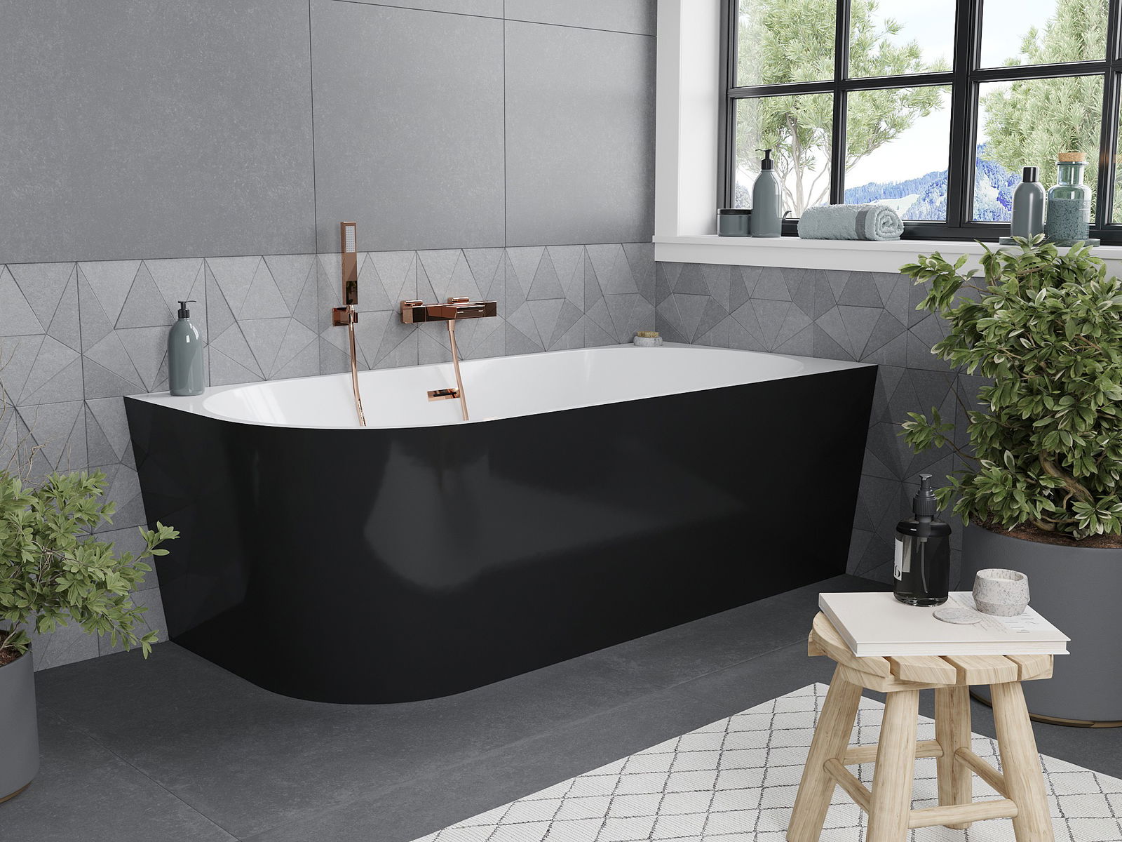 Mexen Mia baignoire autoportante d'angle droite 160 x 80 cm, blanche/noire, trop-plein or rose - 52691608075P-60