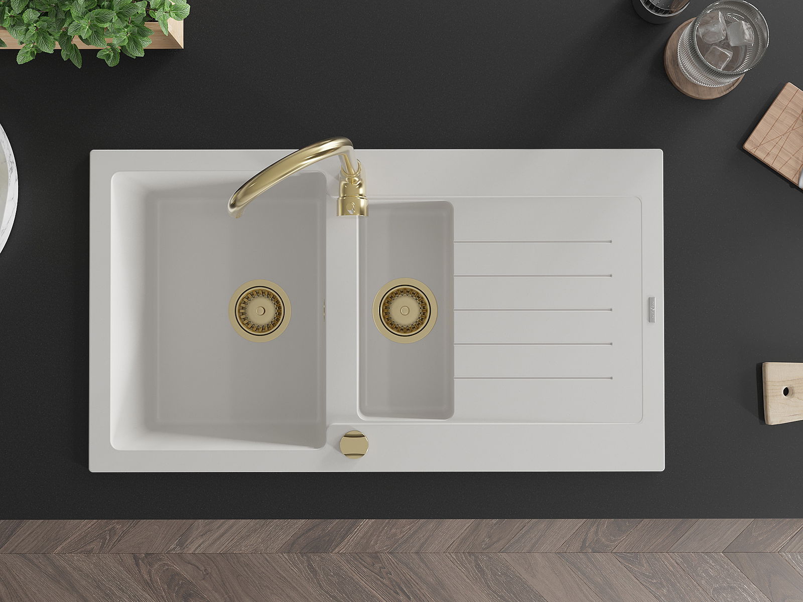 La surface de l'évier est très bien trempée et se distingue par une résistance exceptionnelle aux dommages mécaniques et aux rayures. Ce matériau durable vous permettra de profiter de son bel aspect pendant de nombreuses années.