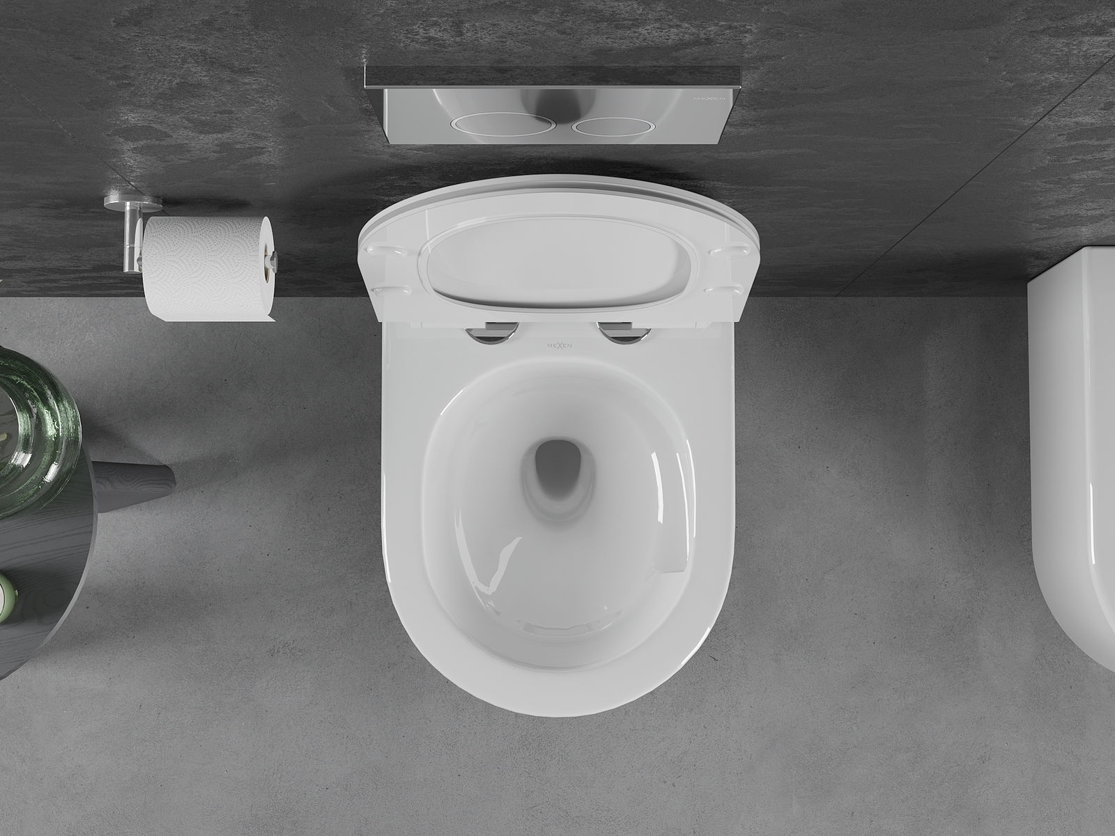 Système caractérisé par l'absence de rebord traditionnel (sans rebord) et un système de rinçage en spirale spécifique qui rappelle un tourbillon. L'eau de rinçage crée un effet "tornado", nettoyant rapidement et efficacement toute la surface de la cuvette, ce qui aide à mieux la purifier et empêche la saleté de s'y déposer.