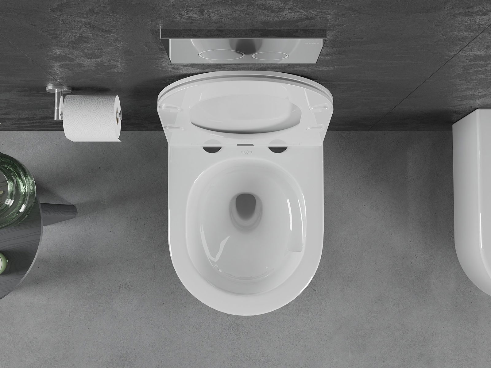 Système caractérisé par l'absence de rebord traditionnel (sans rebord) et un système de rinçage en spirale spécifique qui rappelle un tourbillon. L'eau de rinçage crée un effet "tornado", nettoyant rapidement et efficacement toute la surface de la cuvette, ce qui aide à mieux la purifier et empêche la saleté de s'y déposer.