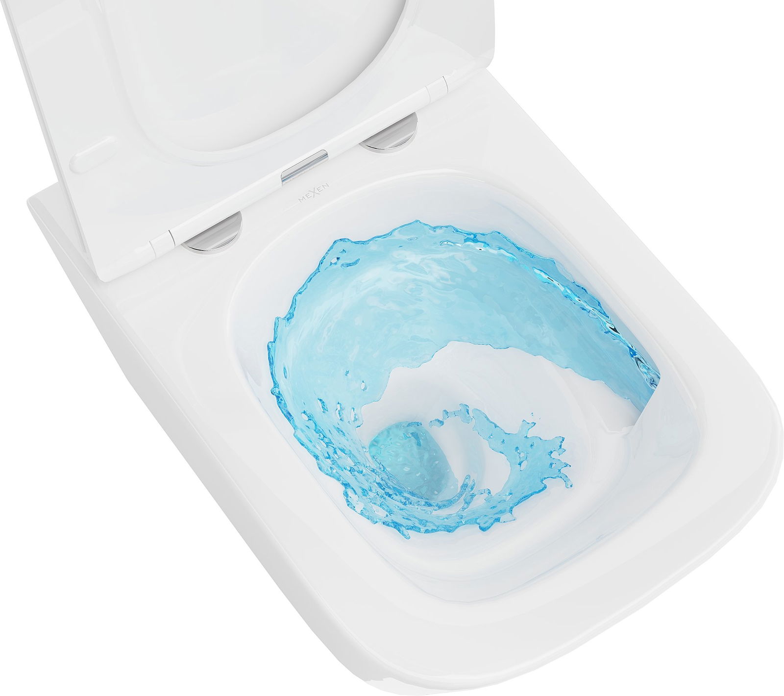 Système caractérisé par l'absence de rebord traditionnel (sans rebord) et un système de rinçage en spirale spécifique qui rappelle un tourbillon. L'eau de rinçage crée un effet "tornado", nettoyant rapidement et efficacement toute la surface de la cuvette, ce qui aide à mieux la purifier et empêche la saleté de s'y déposer.