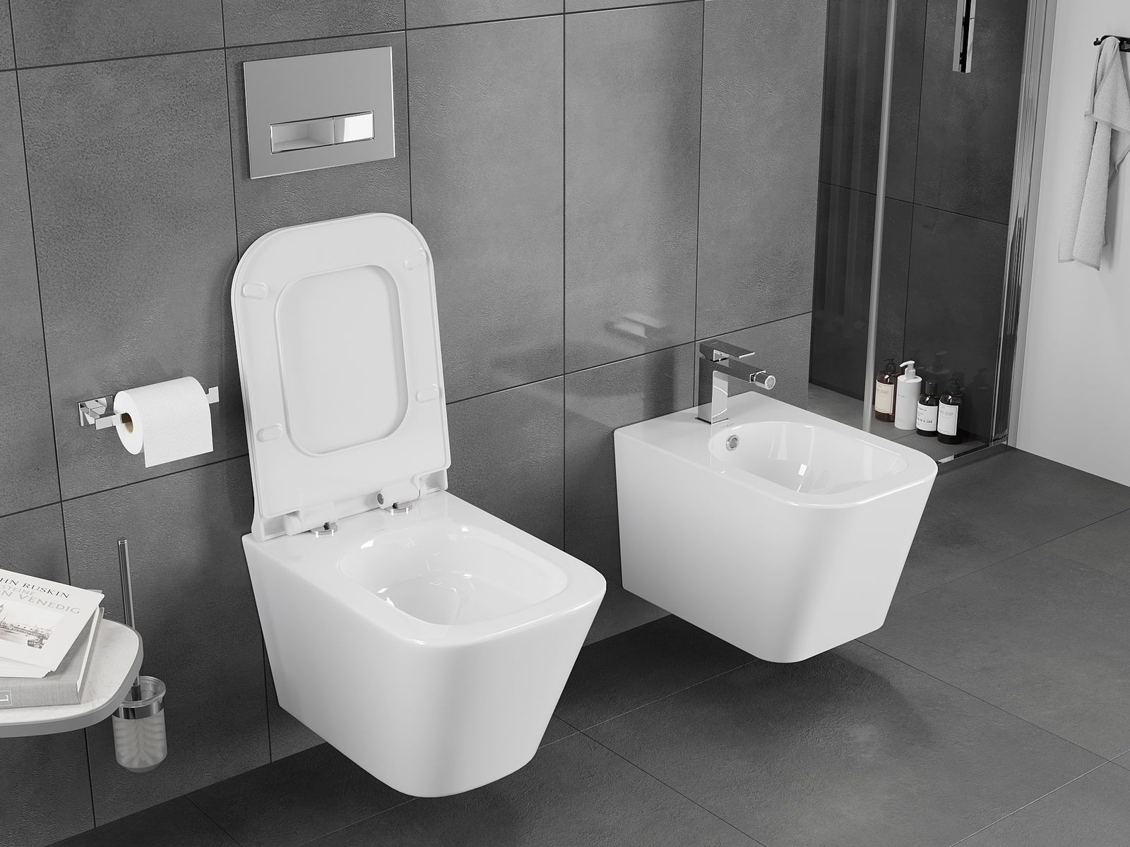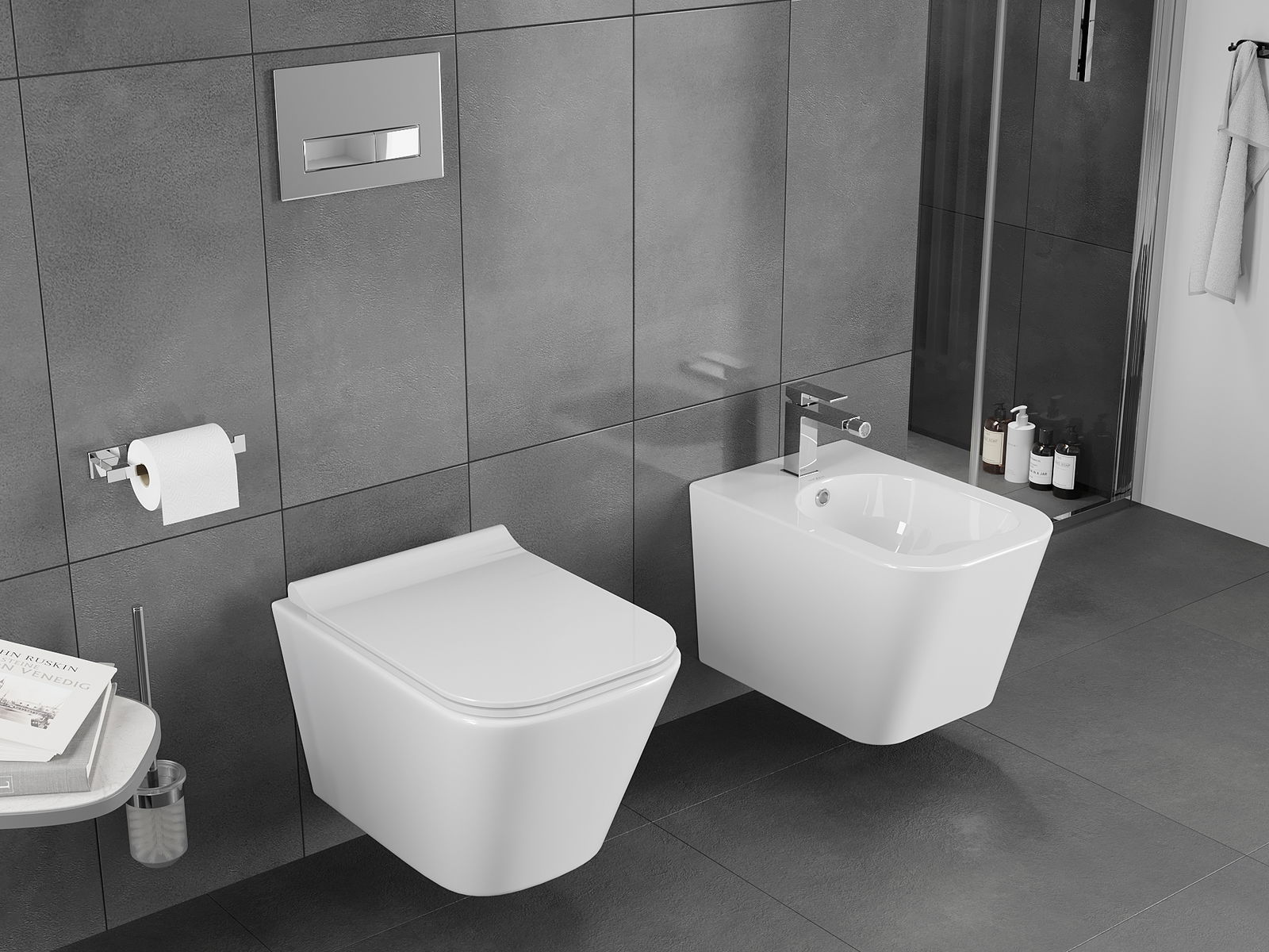 Système moderne dans lequel tous les éléments de montage ont été cachés. C'est non seulement esthétique, mais aussi une solution très pratique. Cela facilite le maintien de la salle de bain propre et assure un aspect soigné de la salle de bain.