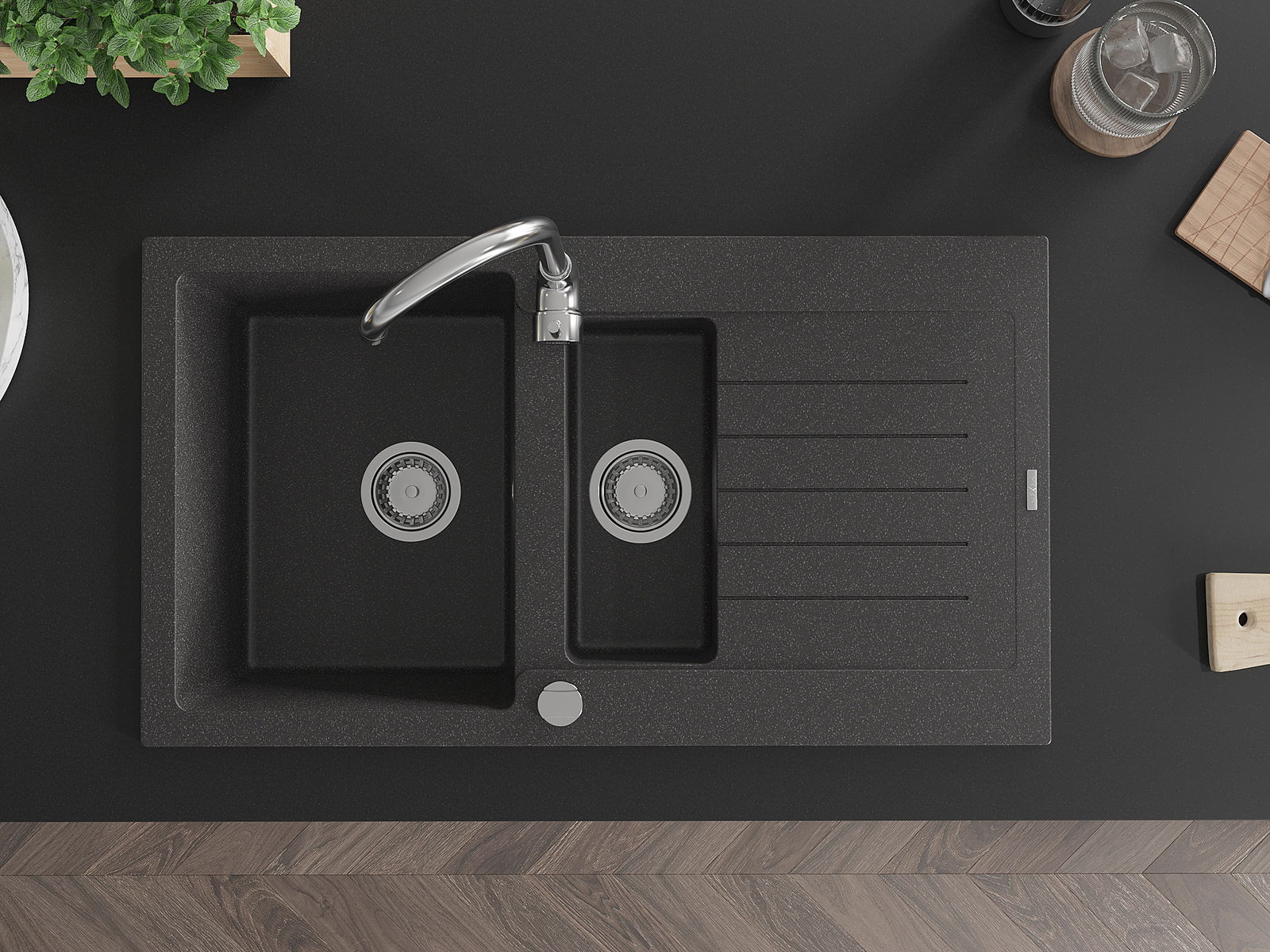 La surface de l'évier est très bien trempée et se distingue par une résistance exceptionnelle aux dommages mécaniques et aux rayures. Ce matériau durable vous permettra de profiter de son bel aspect pendant de nombreuses années.