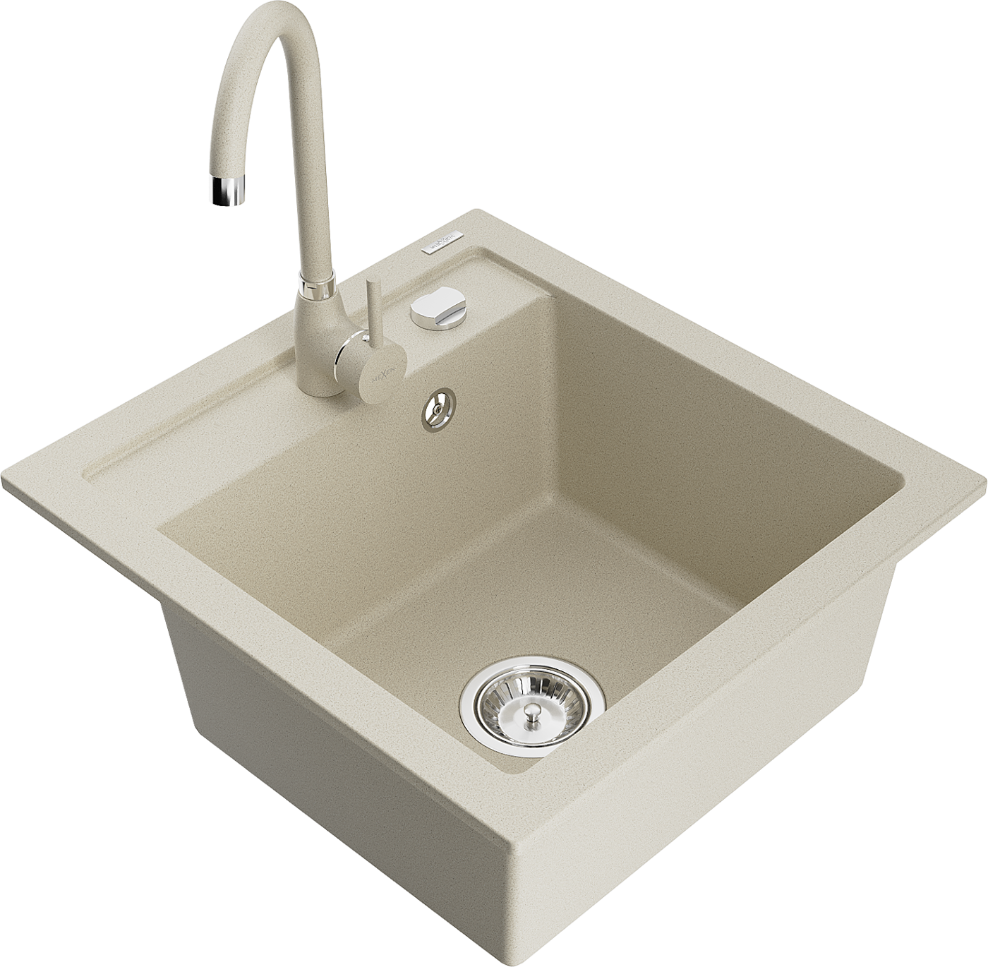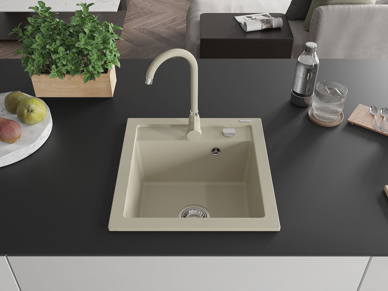 Mexen Vito évier de cuisine en granit 1 bac avec robinet de cuisine Telma, beige - 6503-69-670200-69