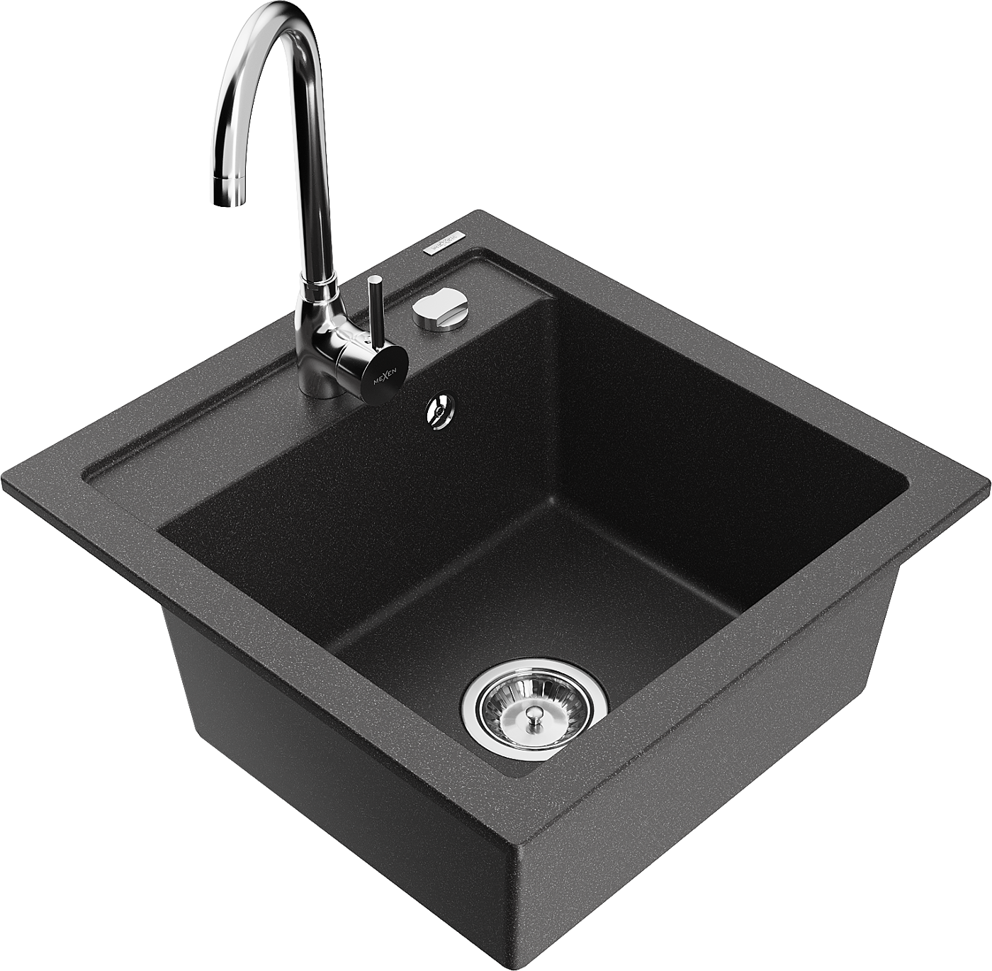 Mexen Vito évier de cuisine en granit 1 bac avec mitigeur Telma, noir moucheté - 6503-76-670200-00