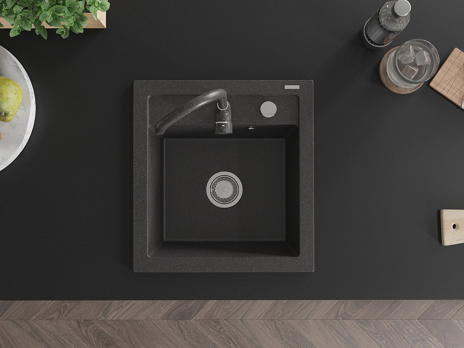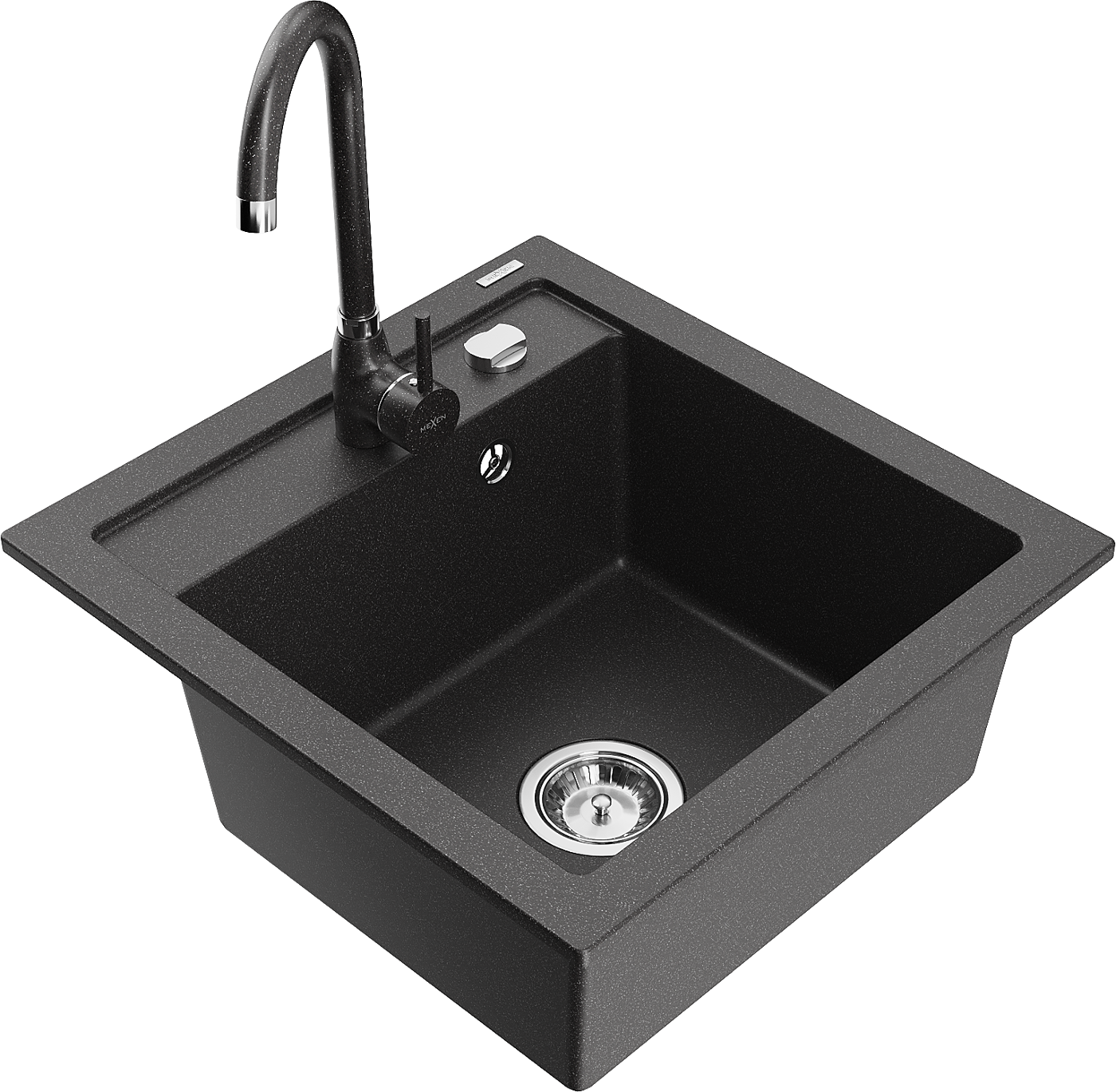 Mexen Vito évier de cuisine en granit 1 bac avec robinet Telma, noir moucheté - 6503-76-670200-76