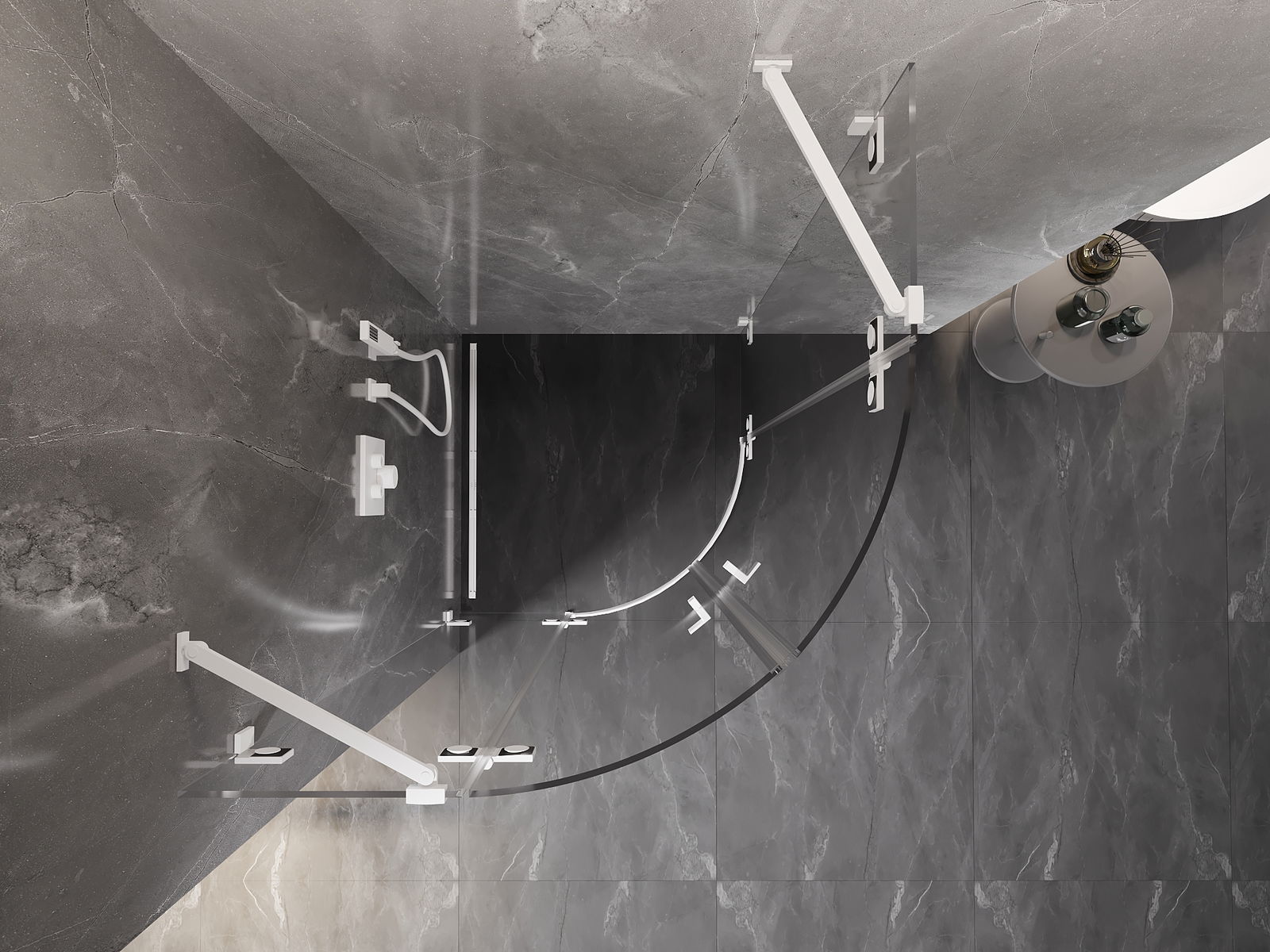 Mexen Lunar cabine de douche semi-circulaire pivotante 80 x 80 cm, transparent, blanche - 833-080L-080P-20-00