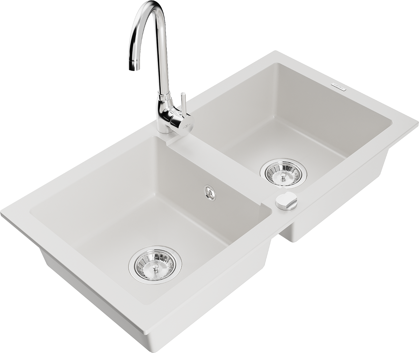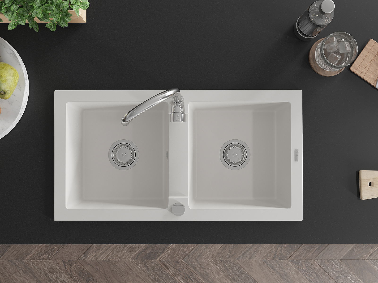 Mexen Mario évier en granit à 2 bacs avec robinet de cuisine Telma, blanc - 6504-20-670200-00