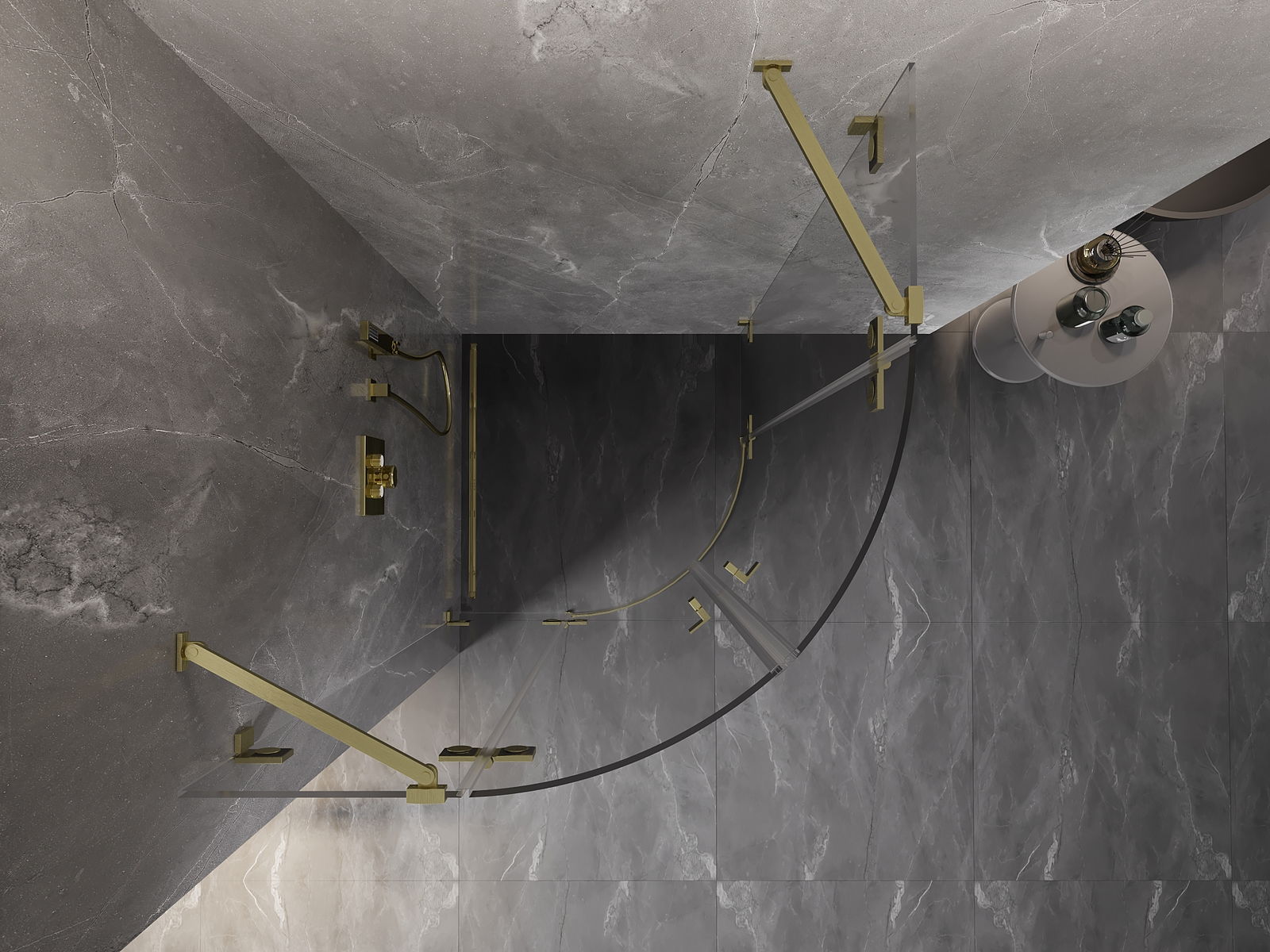 Mexen Lunar cabine de douche semi-circulaire pivotante 100 x 100 cm, transparente, or brossé - 833-100L-100P-55-00