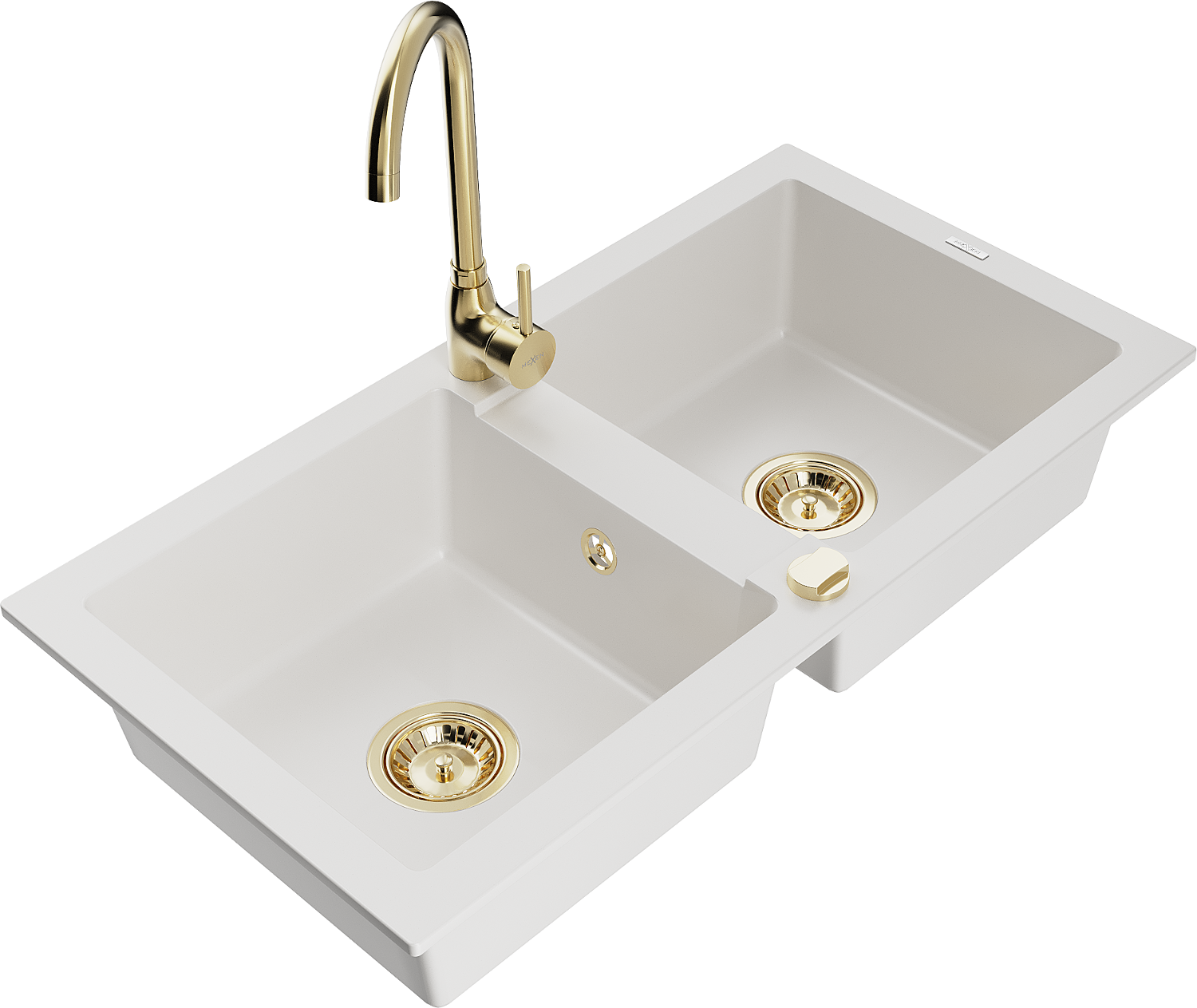 Mexen Mario évier en granit 2 cuves avec robinet de cuisine Telma, blanc - 6504-20-670200-50