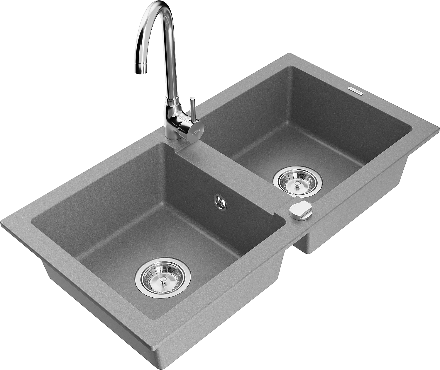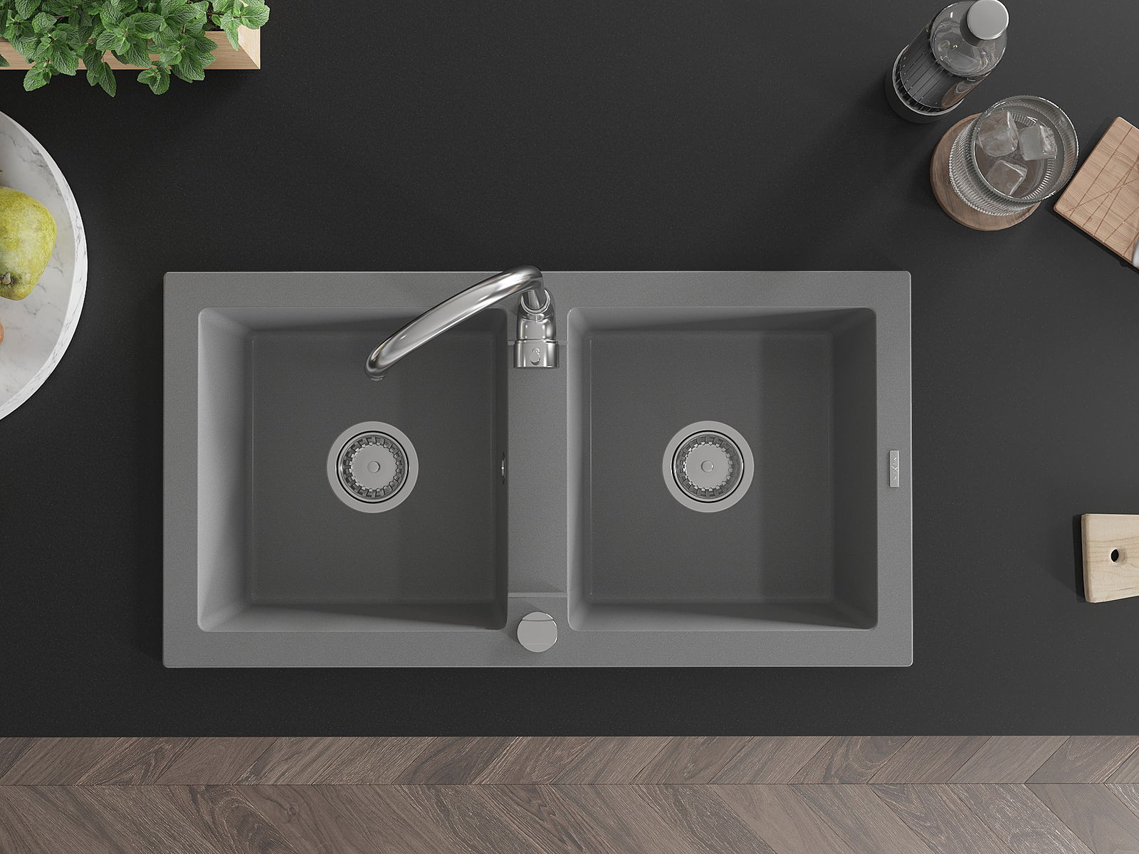 Mexen Mario évier en granit 2 bacs avec robinet de cuisine Telma, gris - 6504-71-670200-00