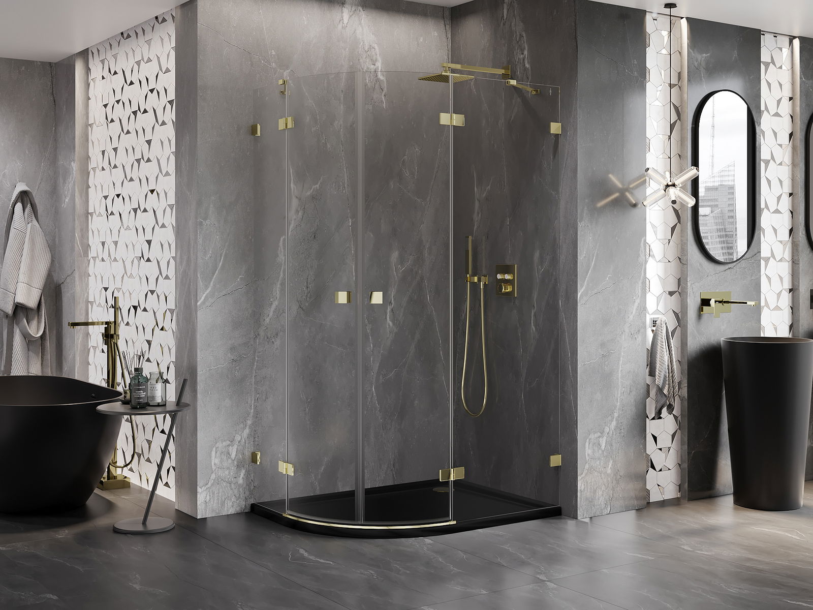 Mexen Lunar cabine de douche semi-circulaire pivotante droite 90 x 80 cm, transparent, or - 833-090P-080L-50-00