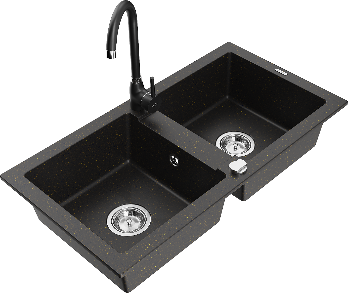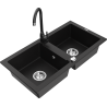 Mexen Mario évier de cuisine en granit à 2 cuves avec robinet de cuisine Telma, noir/doré - 6504-75-670200-70