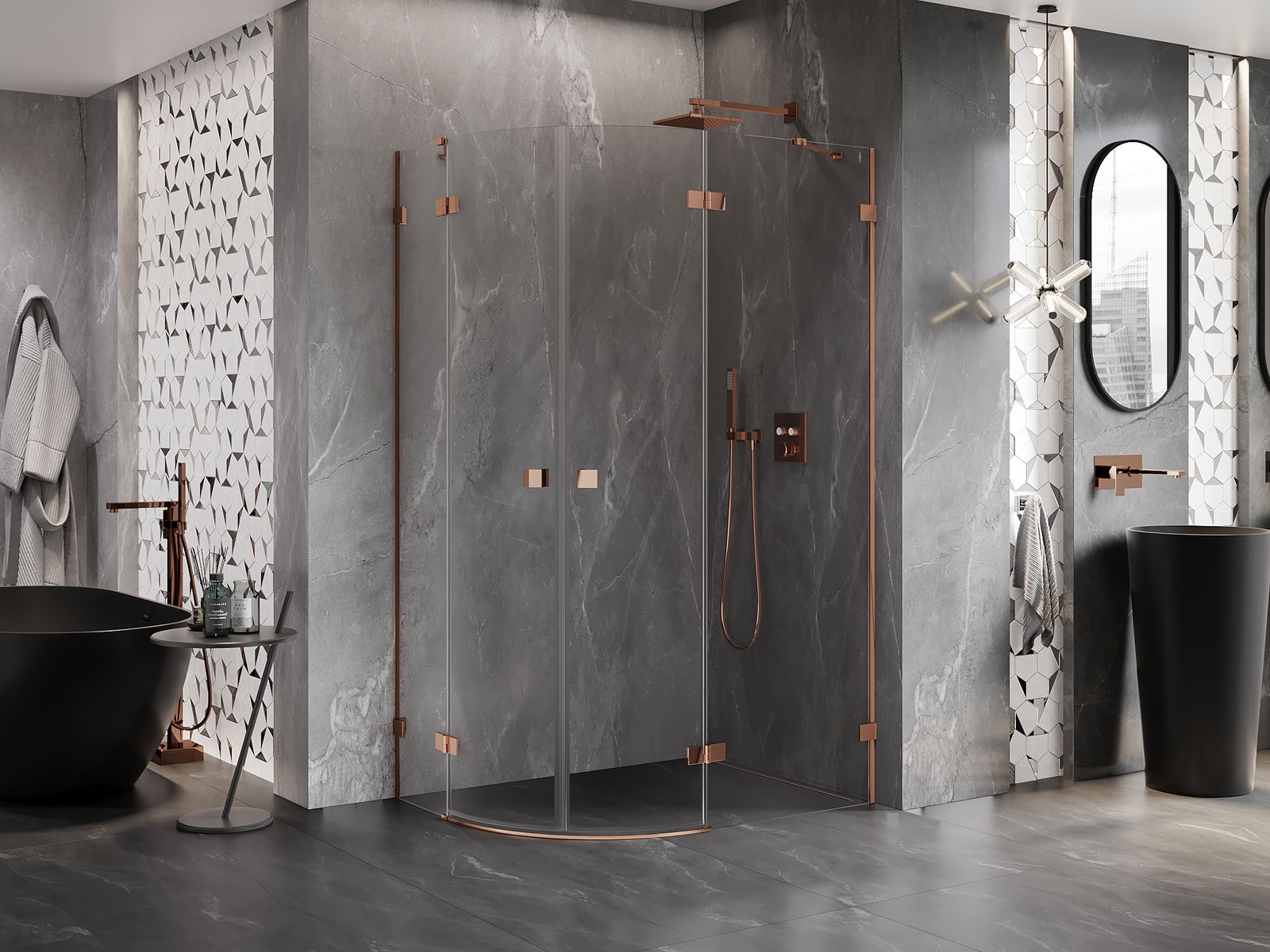 Mexen Lunar cabine de douche semi-circulaire pivotante droite 100 x 80 cm, transparent, or rose - 833-100P-080L-60-00