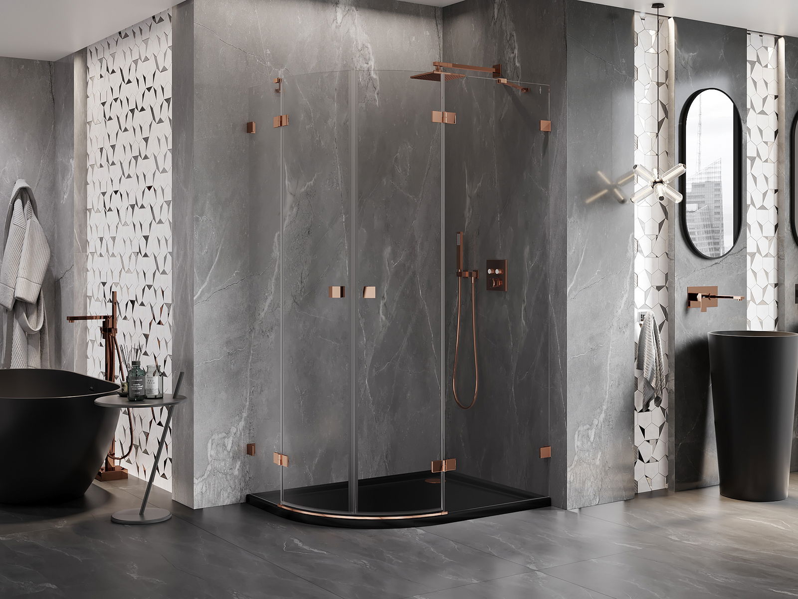 Mexen Lunar cabine de douche semi-circulaire pivotante droite 100 x 90 cm, transparente, or rose - 833-100P-090L-60-00