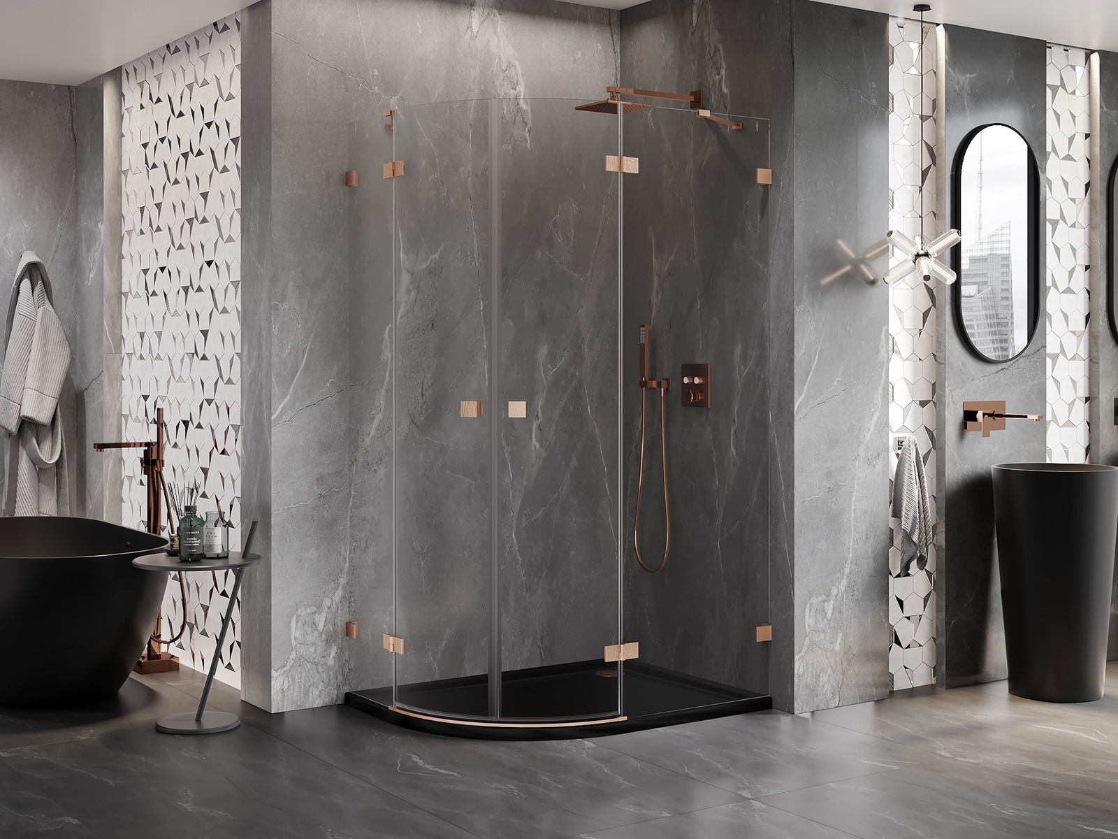 Mexen Lunar cabine de douche semi-circulaire pivotante droite 100 x 80 cm, transparent, cuivre brossé - 833-100P-080L-65-00