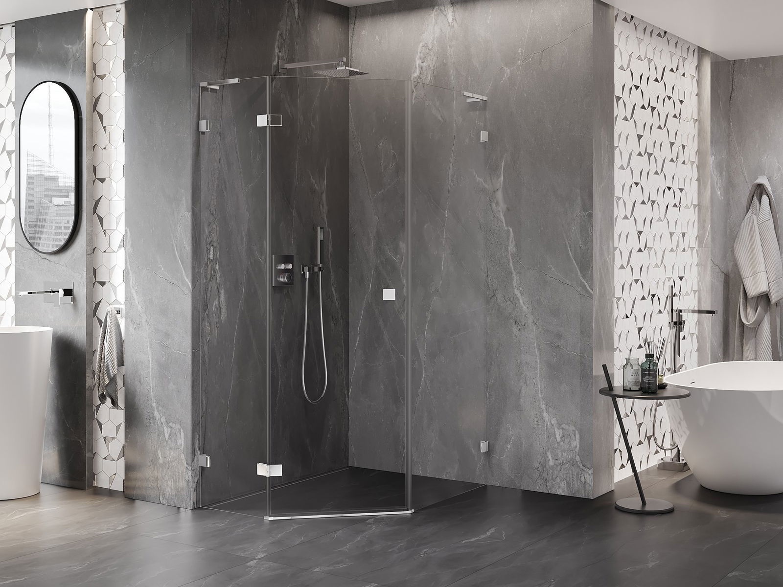 Mexen Lunar L cabine de douche pentagonale pivotante gauche 80 x 100 cm, transparent, chrome - 831L-080L-100P-01-00-L