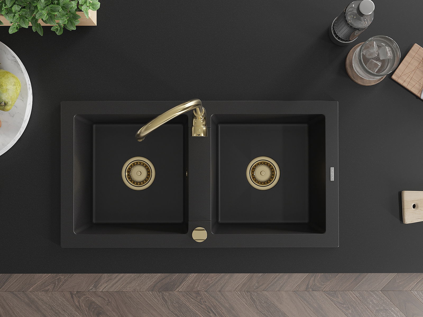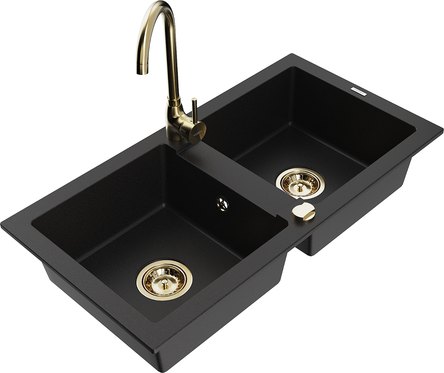 Mexen Mario évier en granit à 2 compartiments avec robinet de cuisine Telma, noir - 6504-77-670200-50