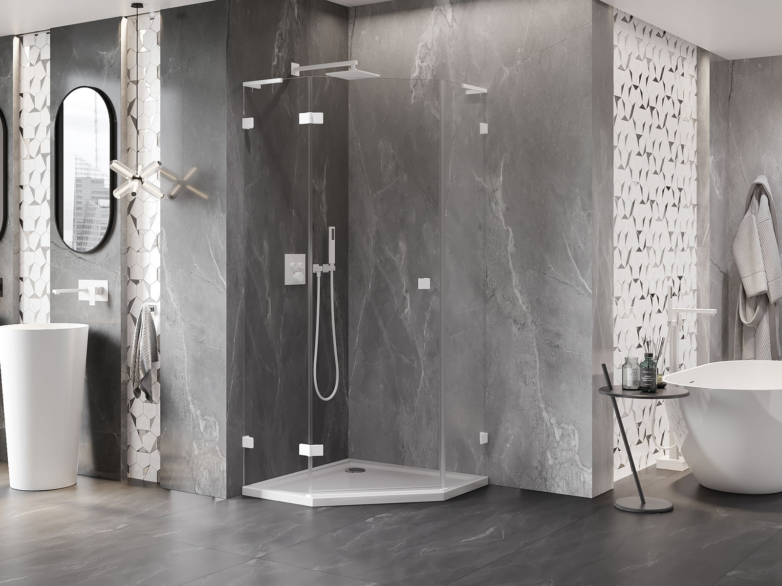 Mexen Lunar L cabine de douche pentagonale pivotante gauche 80 x 80 cm, transparent, blanc - 831L-080L-080P-20-00-L