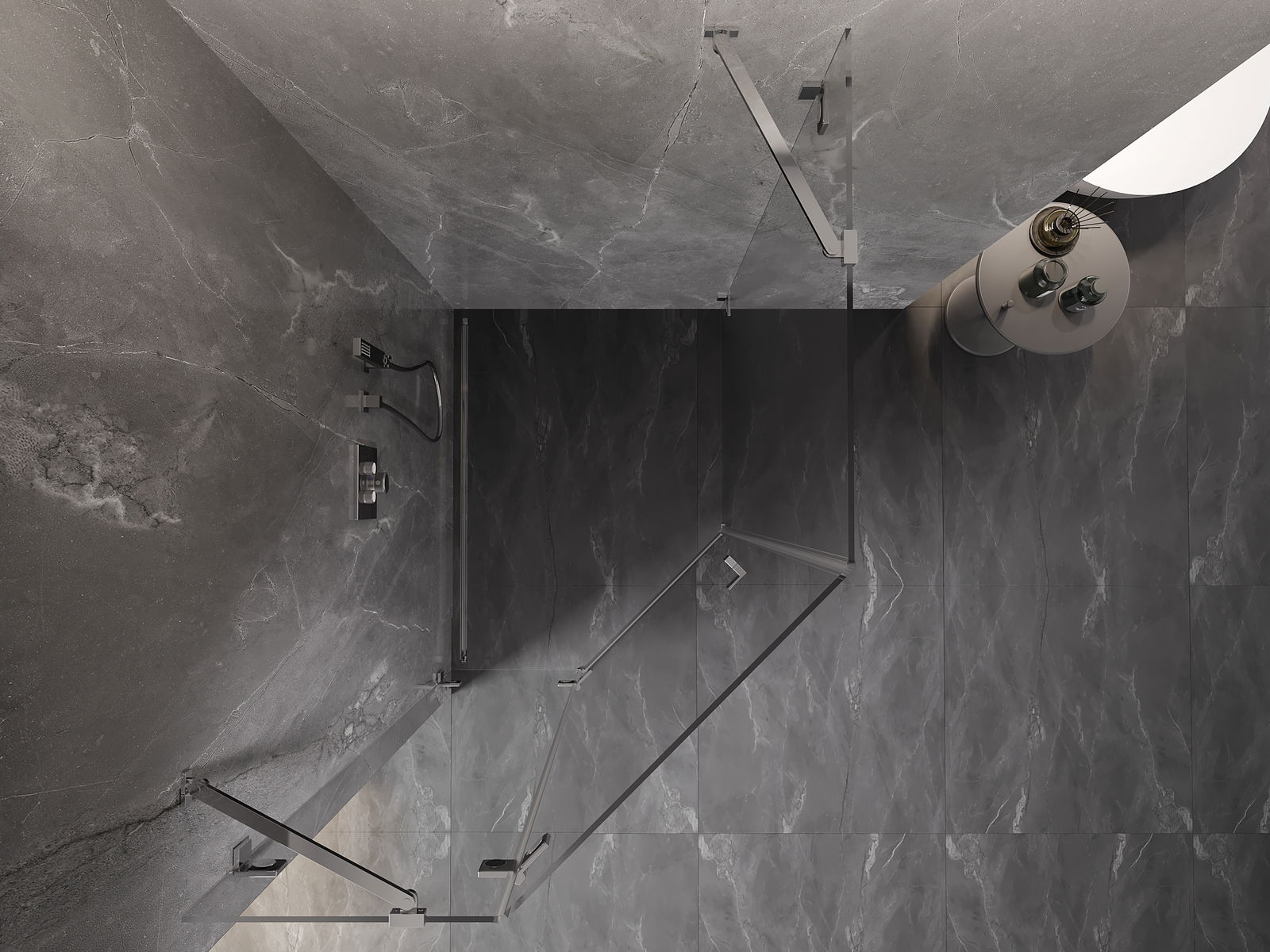 Mexen Lunar cabine de douche pentagonale pivotante gauche 80 x 90 cm, transparente, chrome - 831-080L-090P-01-00-L